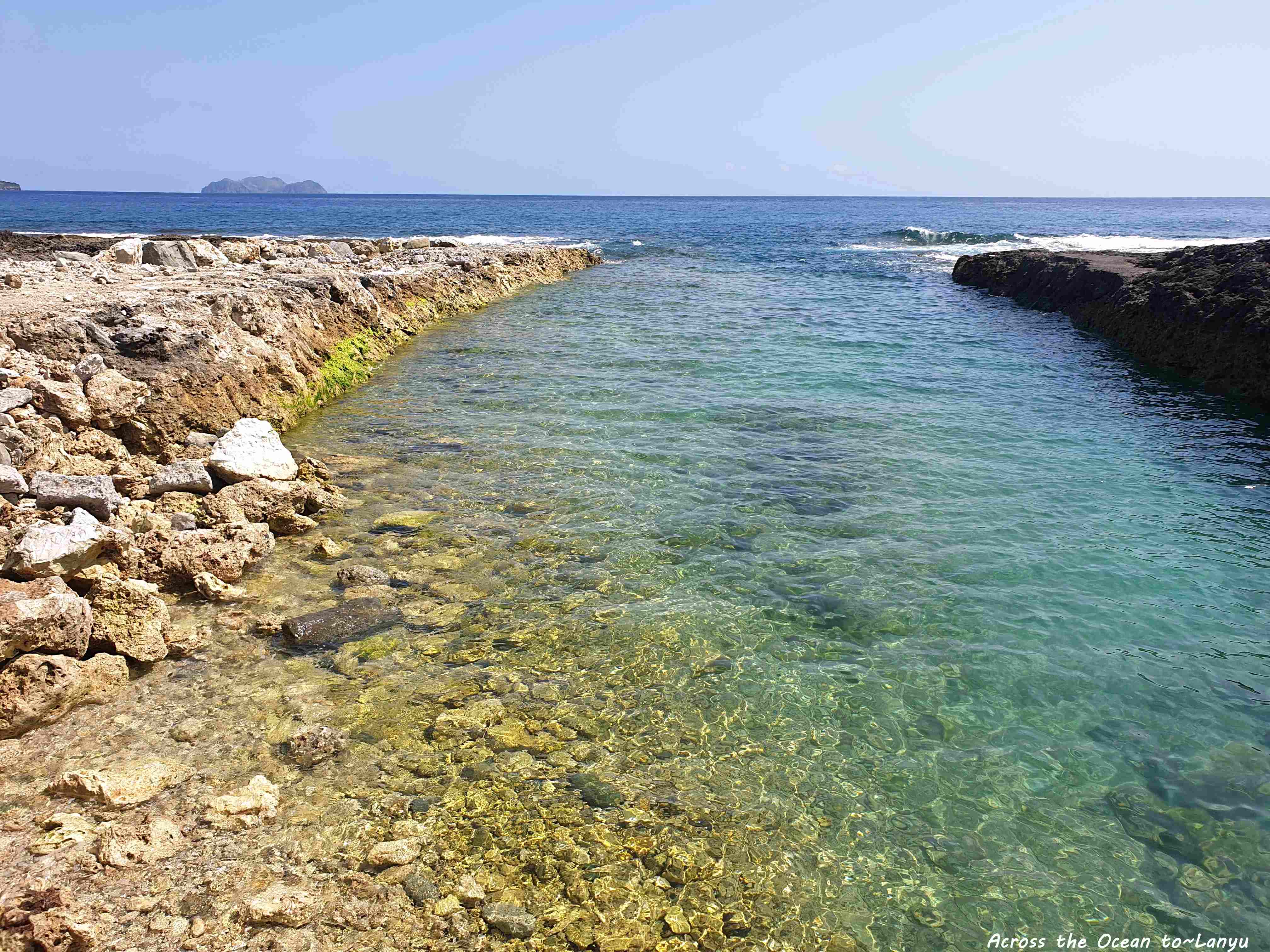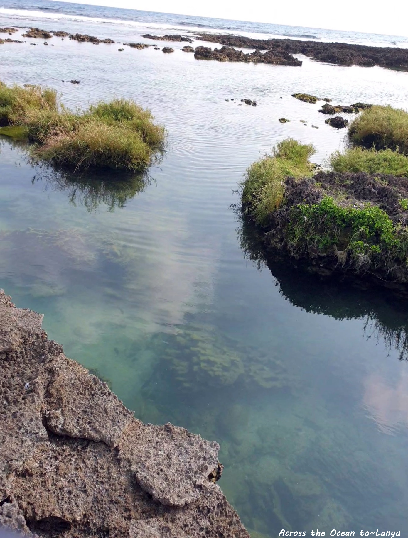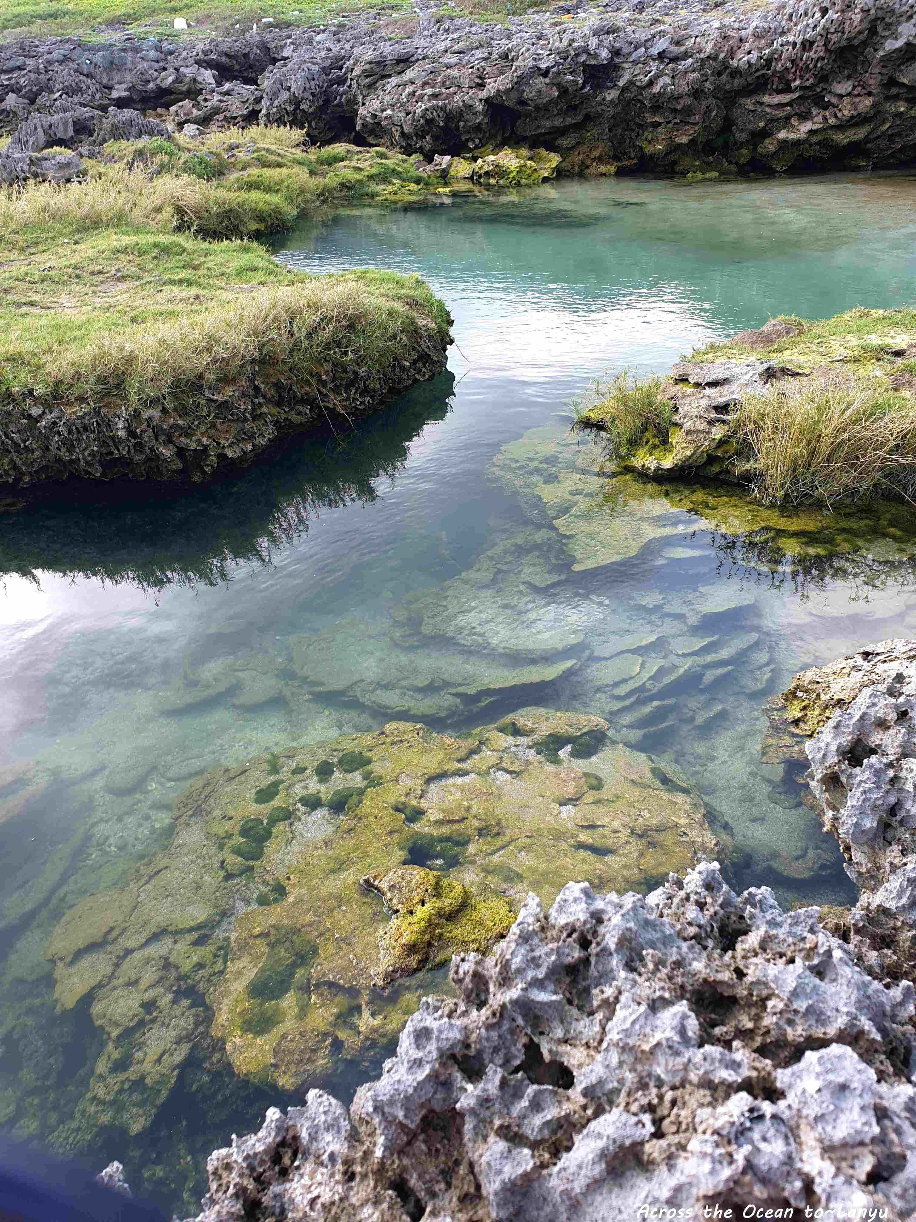 辛苦的爬過礁岩,這裡的礁岩真超銳利,要是一不小心踩空,我想後果會很慘,我超級小心又害怕著走過這些沿岸,但一心想看看所謂的 朗島秘境 是怎樣的景色。