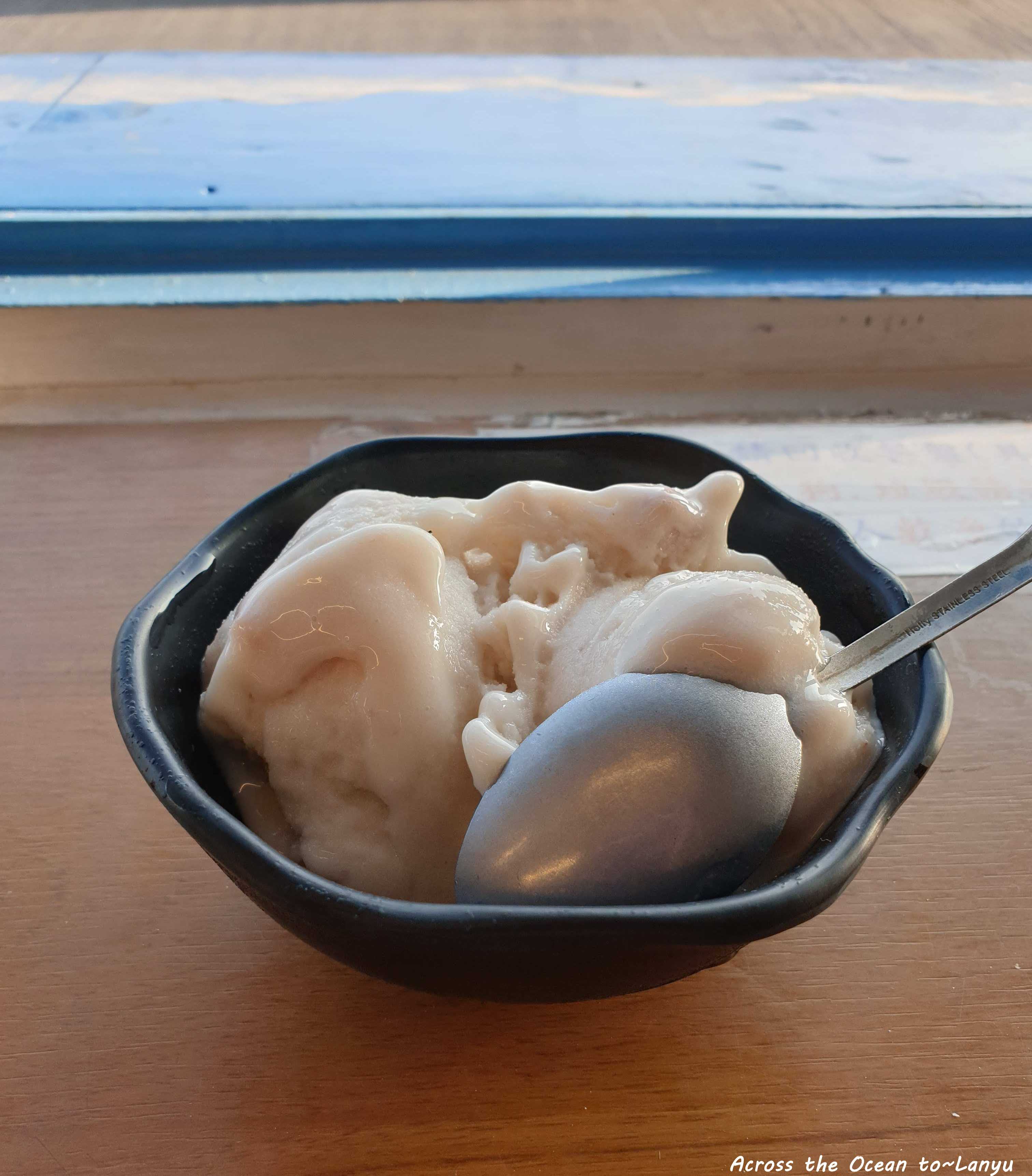 看到好多遊客在這停下來,我也好奇地進去,點了一碗蘭嶼盛產的芋頭冰,意外的好吃。