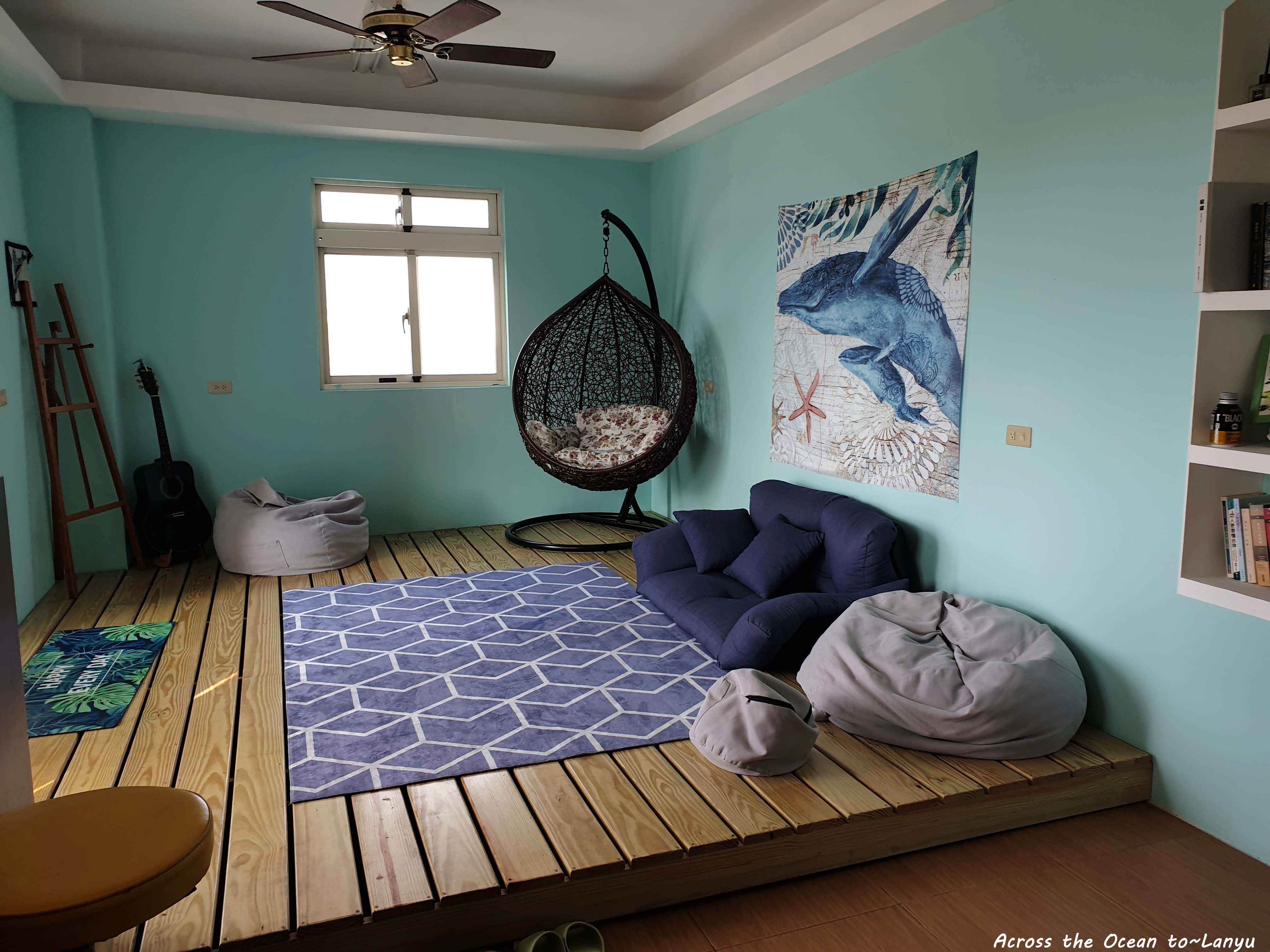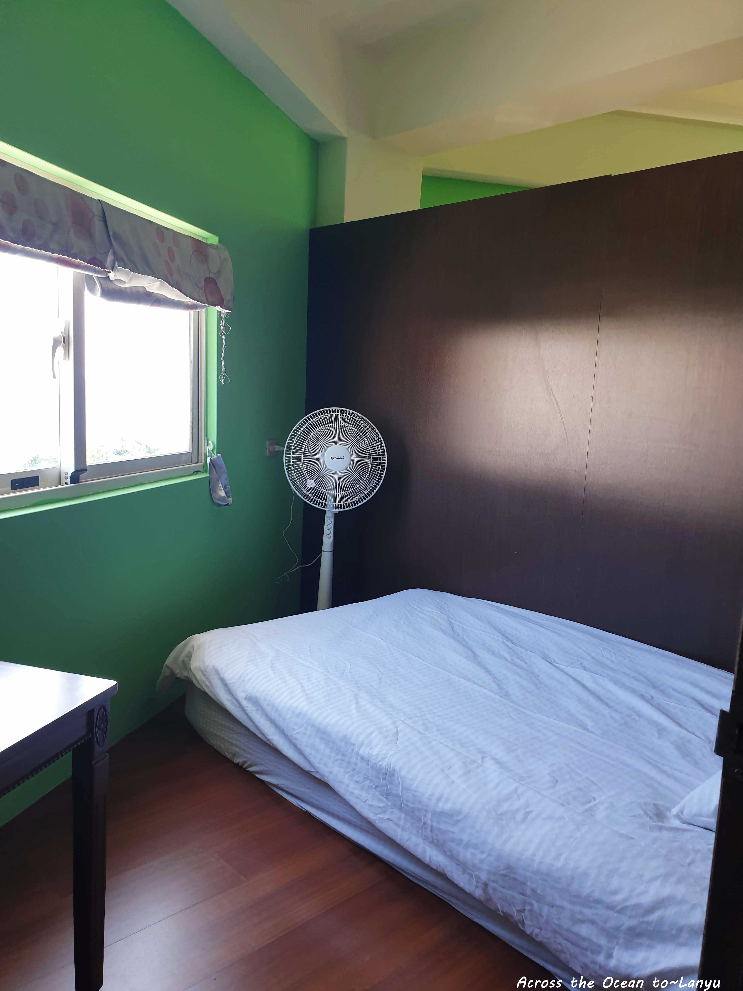 轉角11號民宿是以背包客的方式經營,我看上的是它有隔間,保有私人空間,木頭隔間沒有到天花板,一整層共用一個冷氣, 每間房間都有電扇, 我選了面海的單人房。