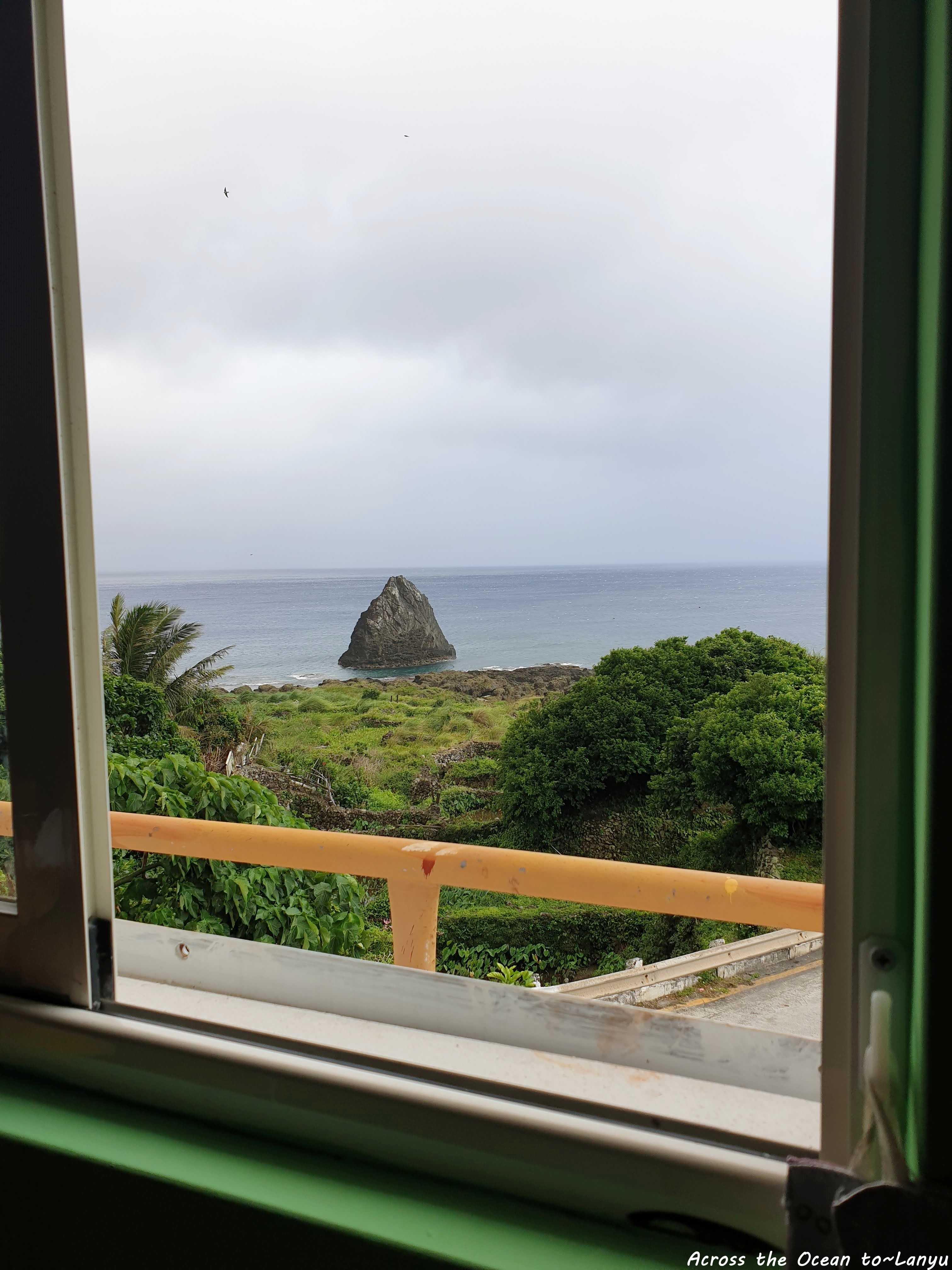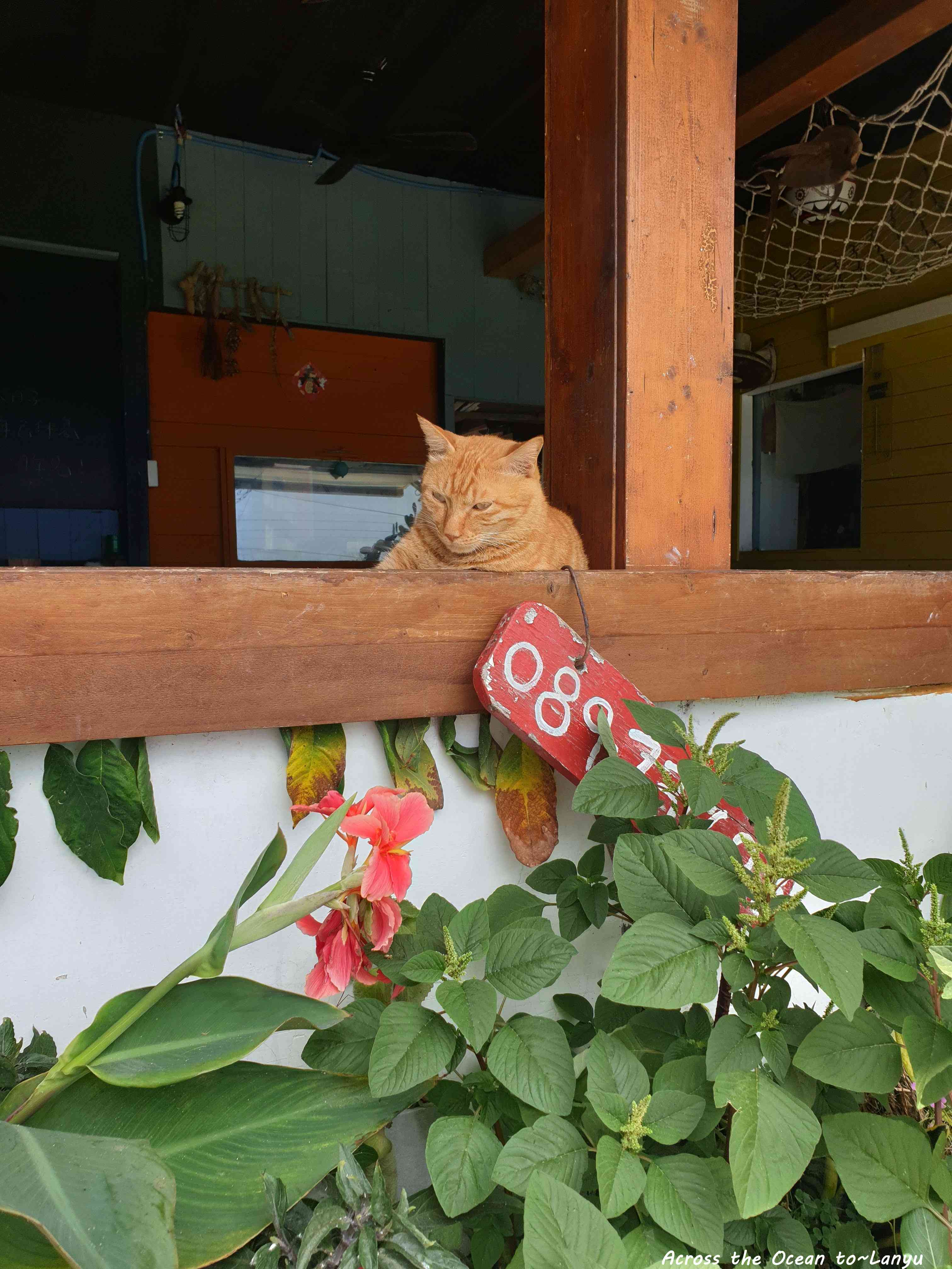 貓咪悠閒地躺在窗台上。看著窗外的陰霾,因東北季風南下,蘭嶼瞬間開始變天下起雨來。