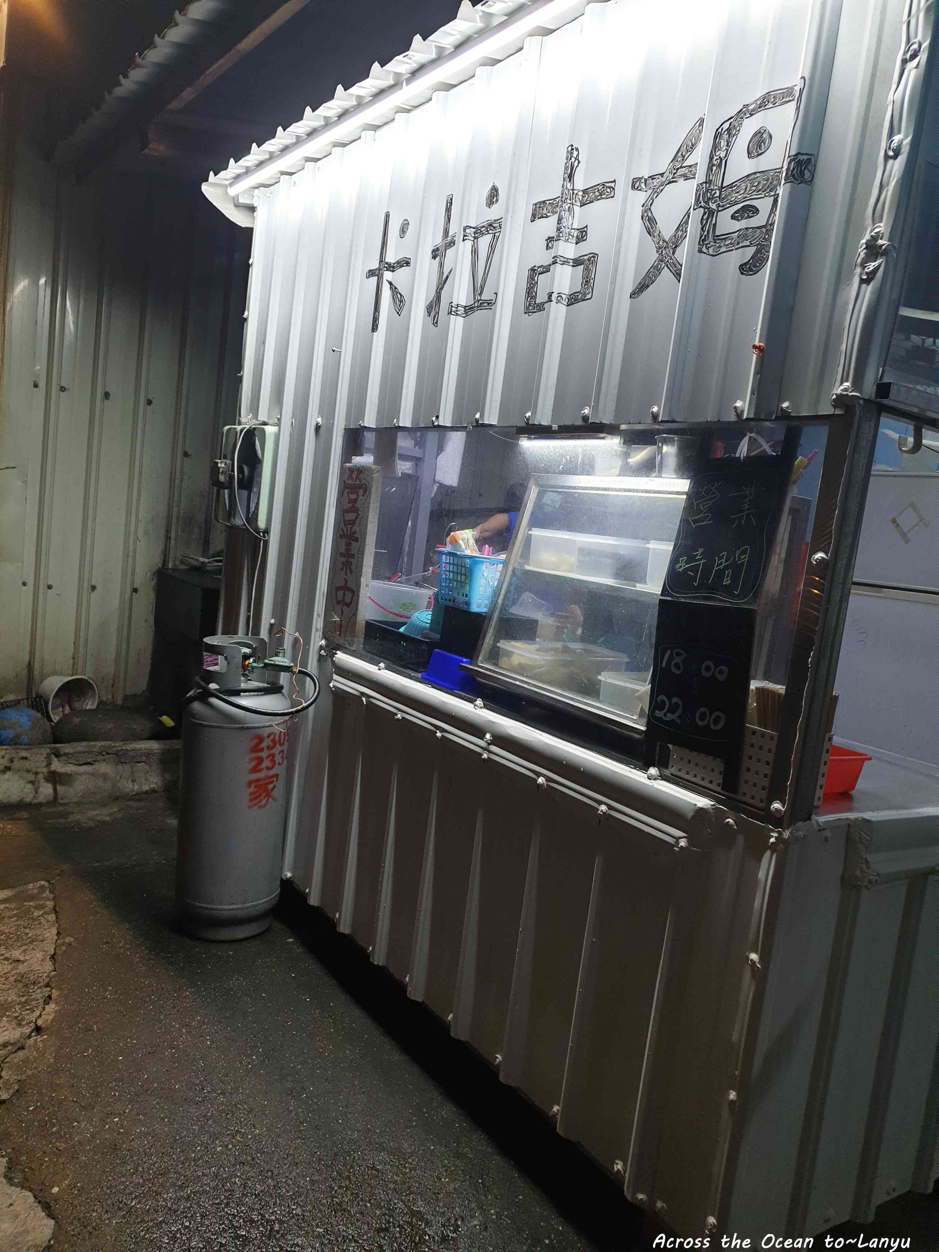 之前網路上看到有人推薦對面的鹹酥雞店,晚上八點會營業,還好暴風雨的那晚,他有開,我不用選擇吃泡麵,真是不離不棄的鹹酥雞攤阿,對旅人來說多麼重要。店名:卡拉吉姆,我猜是達悟族語,小小的店名,生意好又好吃。