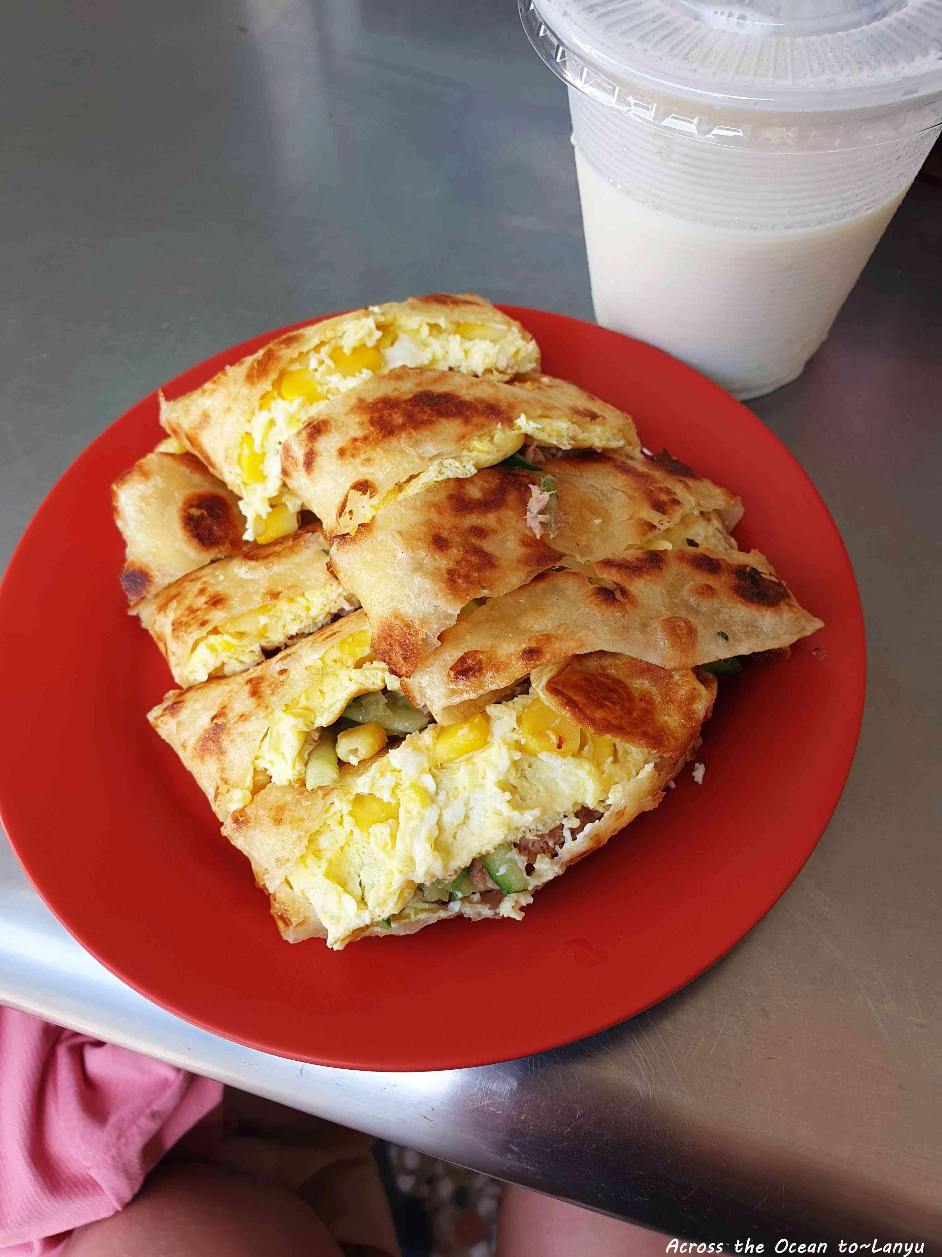 這蛋餅分量太驚人,果真和民宿老闆說的一樣,這家早餐的蛋餅很好吃,又酥又脆,接著幾天我都還光顧,現在都好懷念😉。