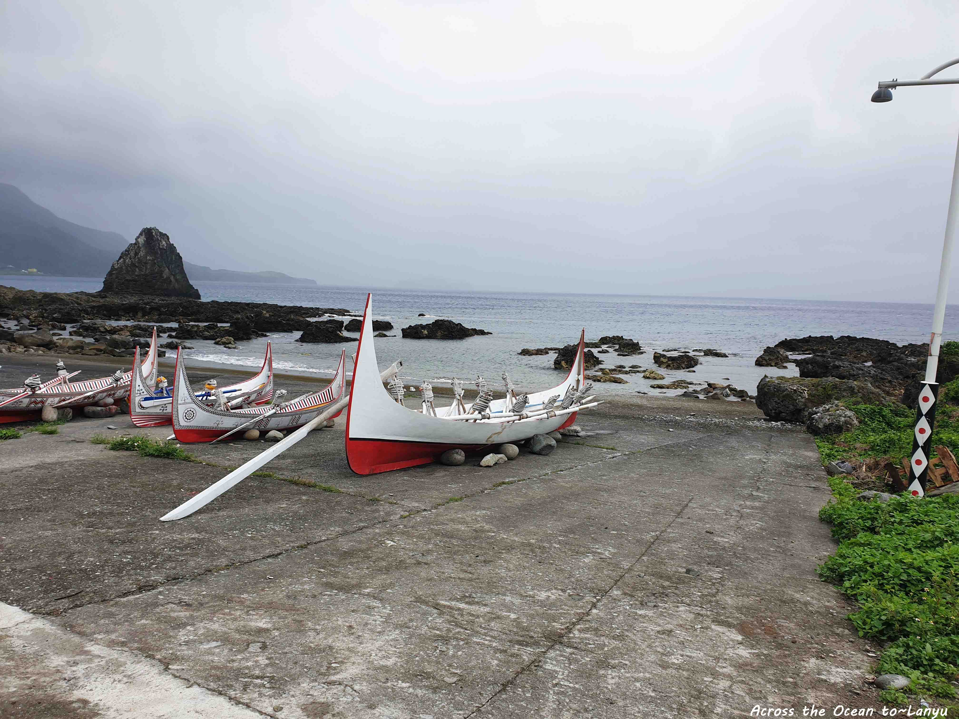 在蘭嶼最後一天的下午,天氣陰霾,遠方美麗的海洋都被烏雲壟罩。我朝著公路騎下去,想看看民宿老闆介紹的漁人部落海灘。幾艘拼板舟,站在風口上感受暴風雨即將要來臨了。