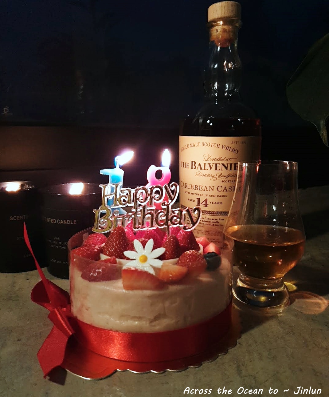 在蛋糕上插上院子掉落的雞蛋花,也是我最喜歡的花,半杯whisky,許下心裡願望。望著18蠟燭要燒盡了,我敢緊吹襲這對我特別的18號,希望之後一切平安喜樂。