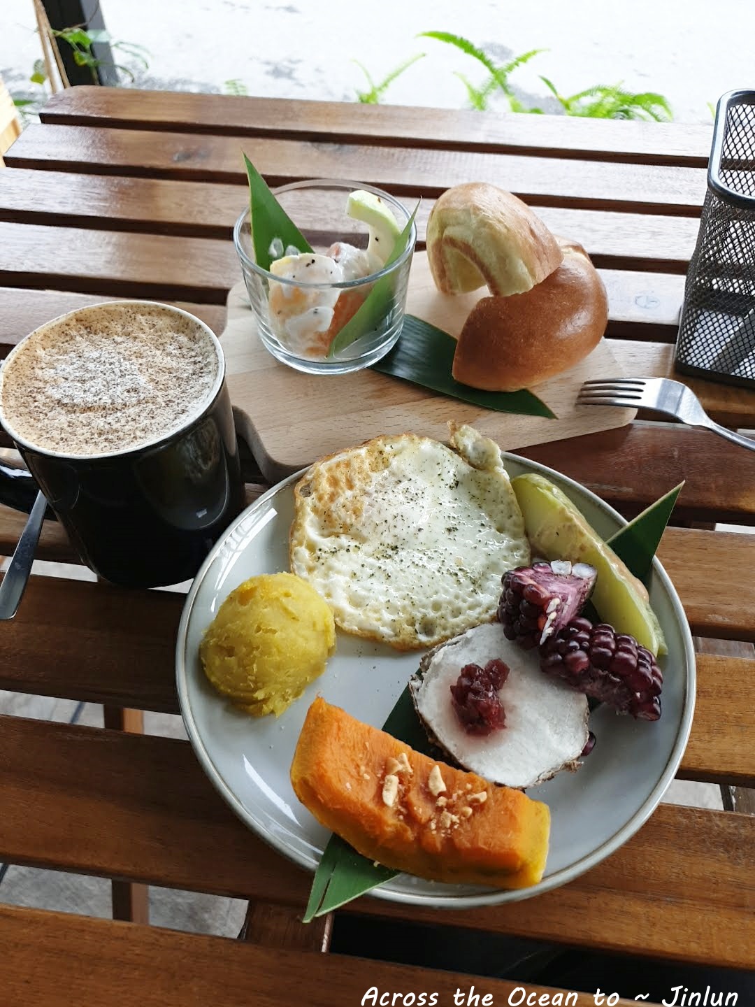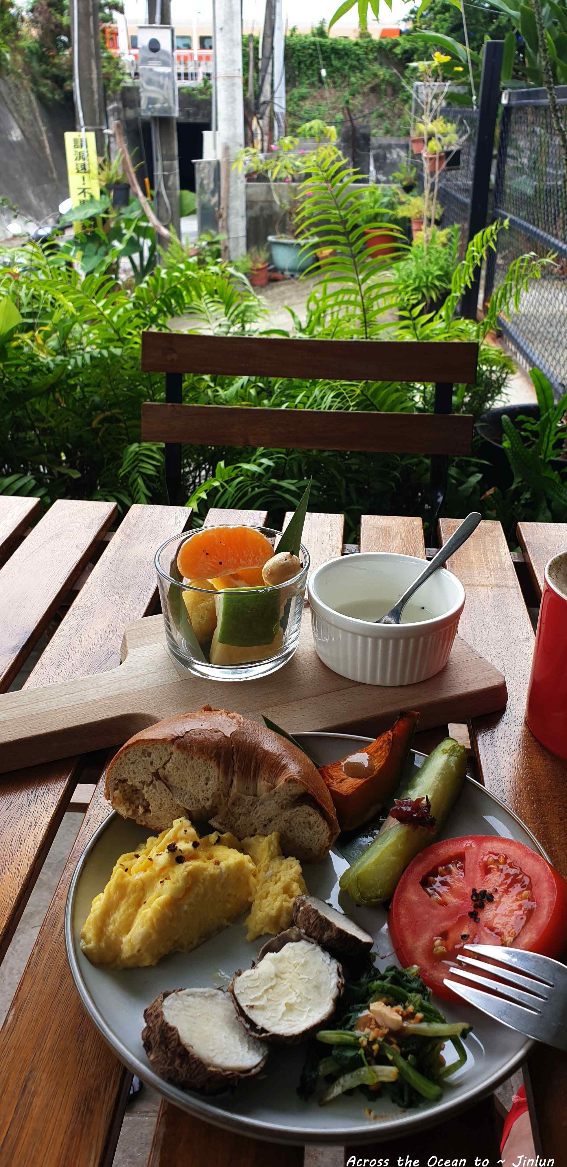 早上九點依舊來到民宿提供的早餐力卡ㄎ咖啡,依舊坐在戶外的位置。在地的食材ㄉ早餐配上咖啡,望著不遠處金崙火車站迎來一早泡湯的遊客,我默默地望著一切,心理感受到無比的平靜🙂。