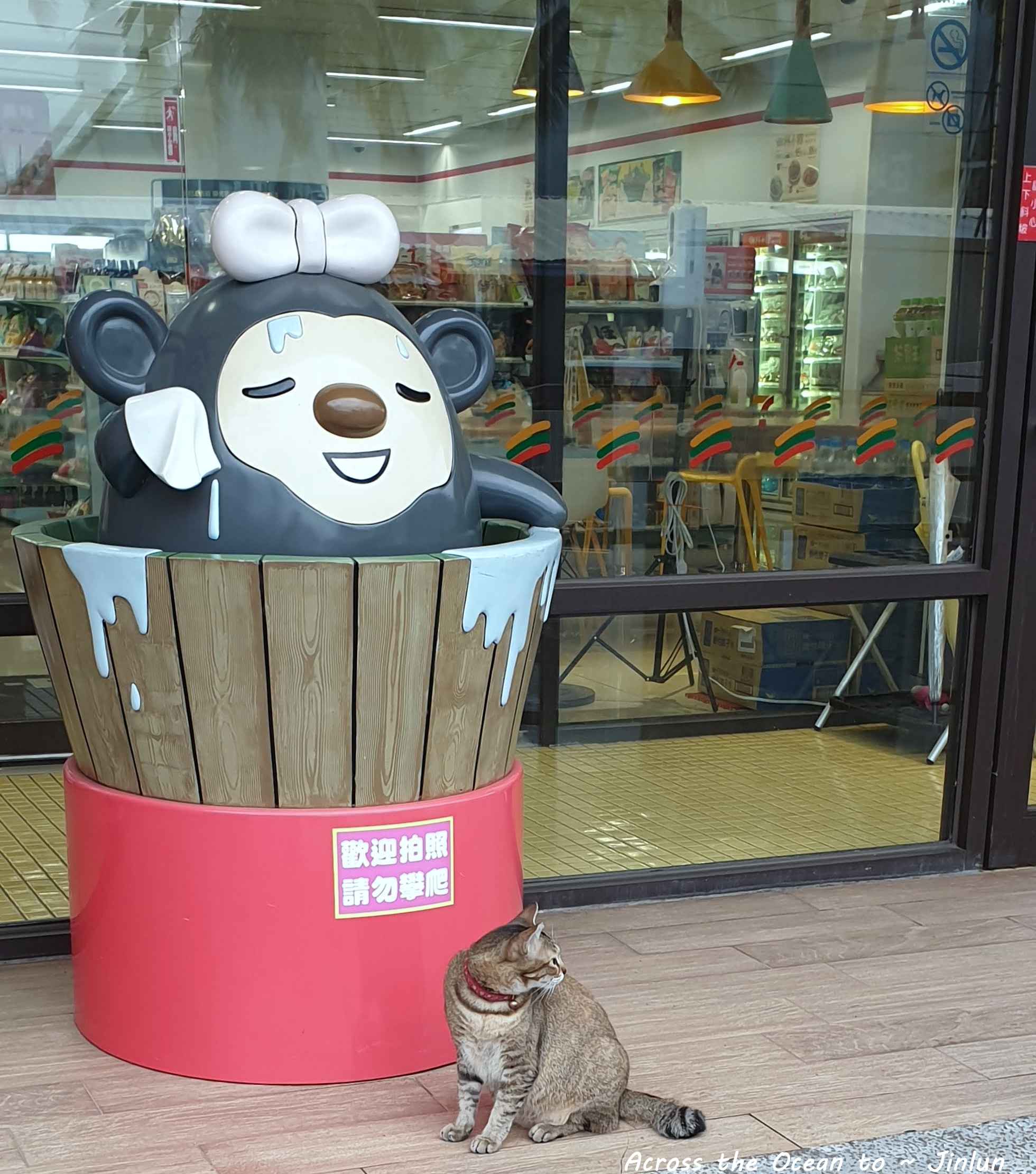 還沒到入住的時間,先將行李放在大廳裡,走去不遠處 7-11,這7-11對這小鎮及像我這樣的遊客實在太方便了,一到門口就看到上次看得抓到老鼠的店貓,一樣是帥氣阿🥰。