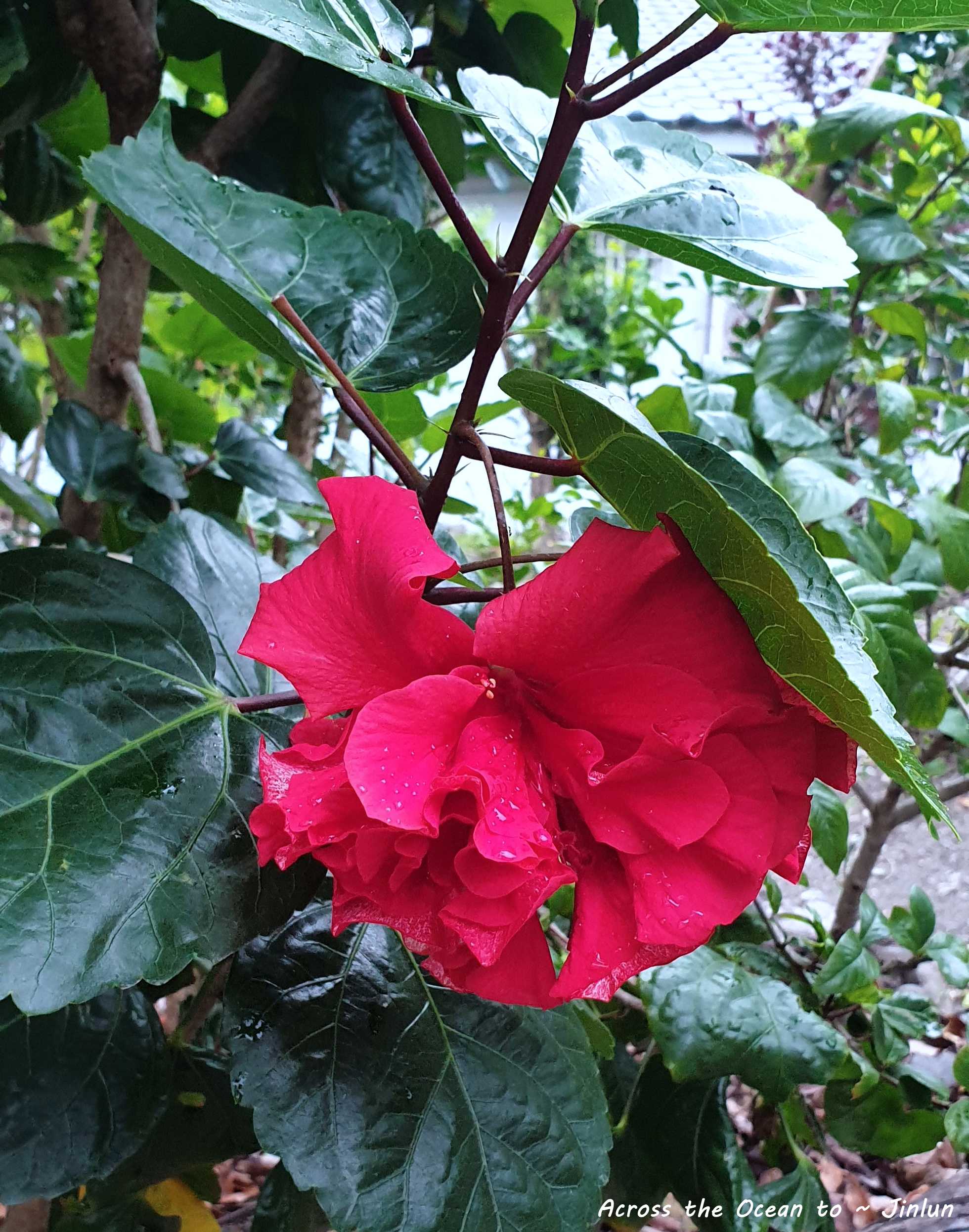 吃完早餐走回民宿時再次隨興的走在小鎮上,很想遇到之前遇到的幾隻親人的貓咪。到是注意到民宿旁鄰居的白色山茶花及黃色的扶桑花(我對植物認知不多)😅,雨後的清晨影藏在樹叢裡花朵真美。
