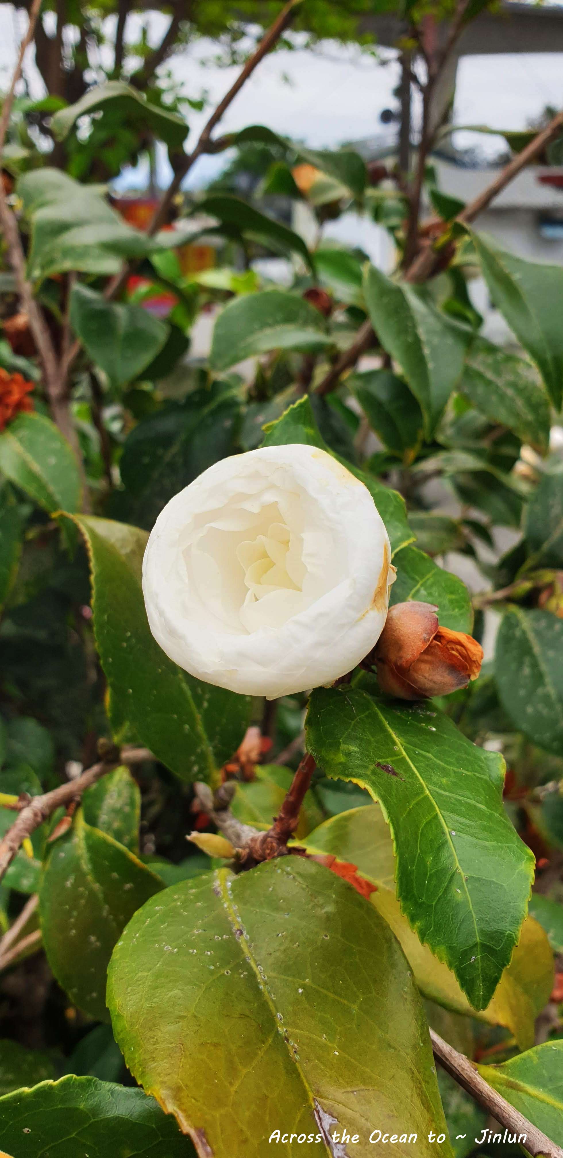 雨停了,想去看看太平洋,一走出去就看到這隻白貓穩穩地坐在台階上,毫無違和感,反而覺得我們這些遊客打擾它~哈哈哈。隔壁鄰居的山茶花經過幾天雨後的滋潤也開啟了花苞,躲在樹叢裡致意的綻放著,就像這個小鎮給我的感覺,寧靜又美好。