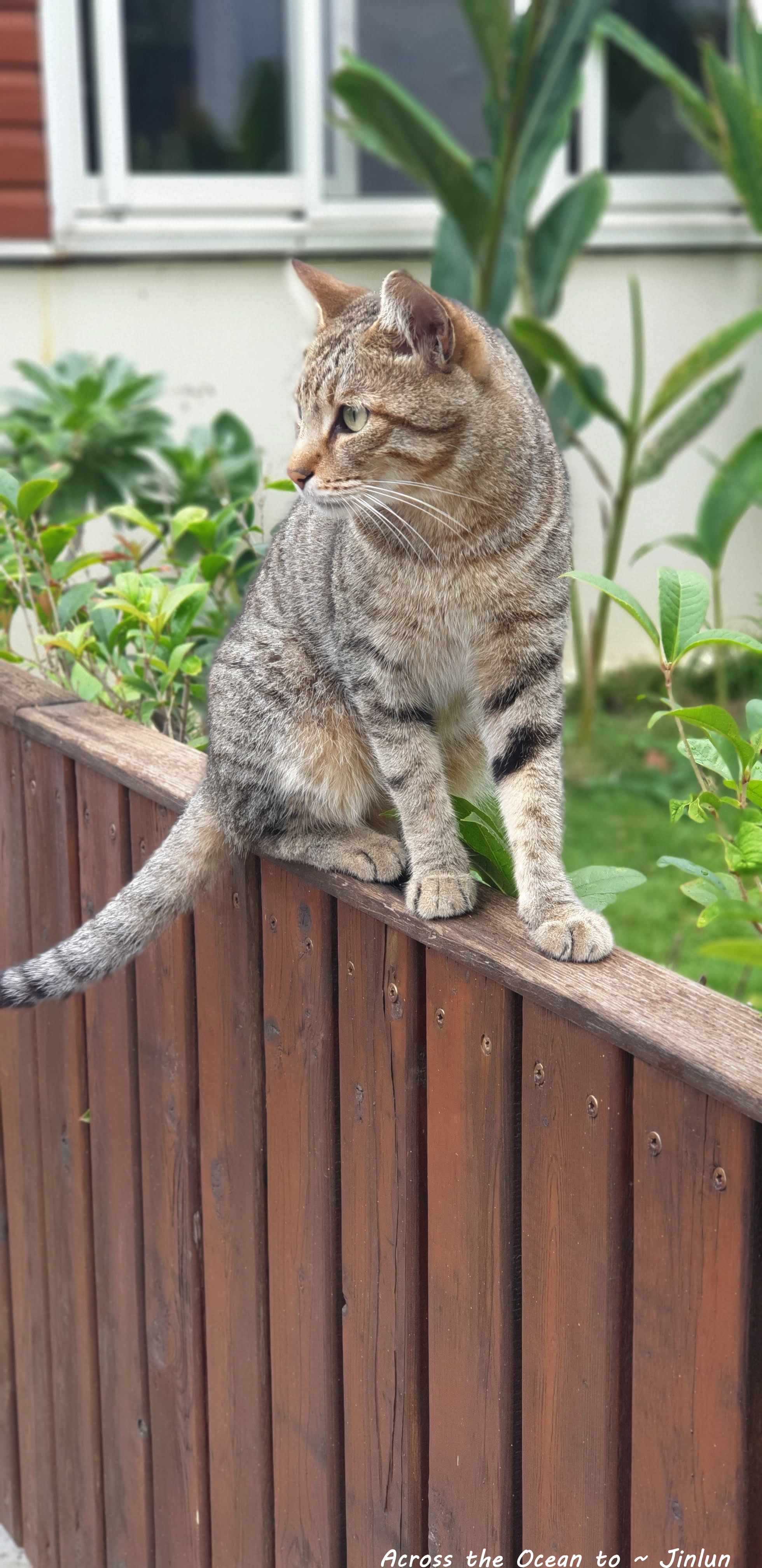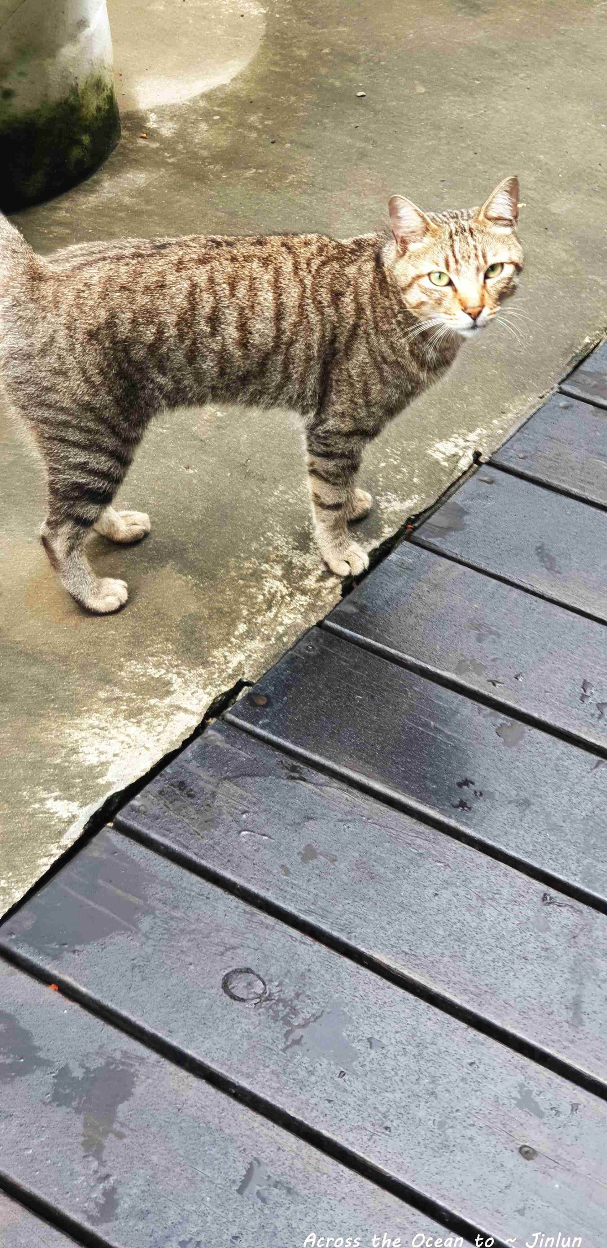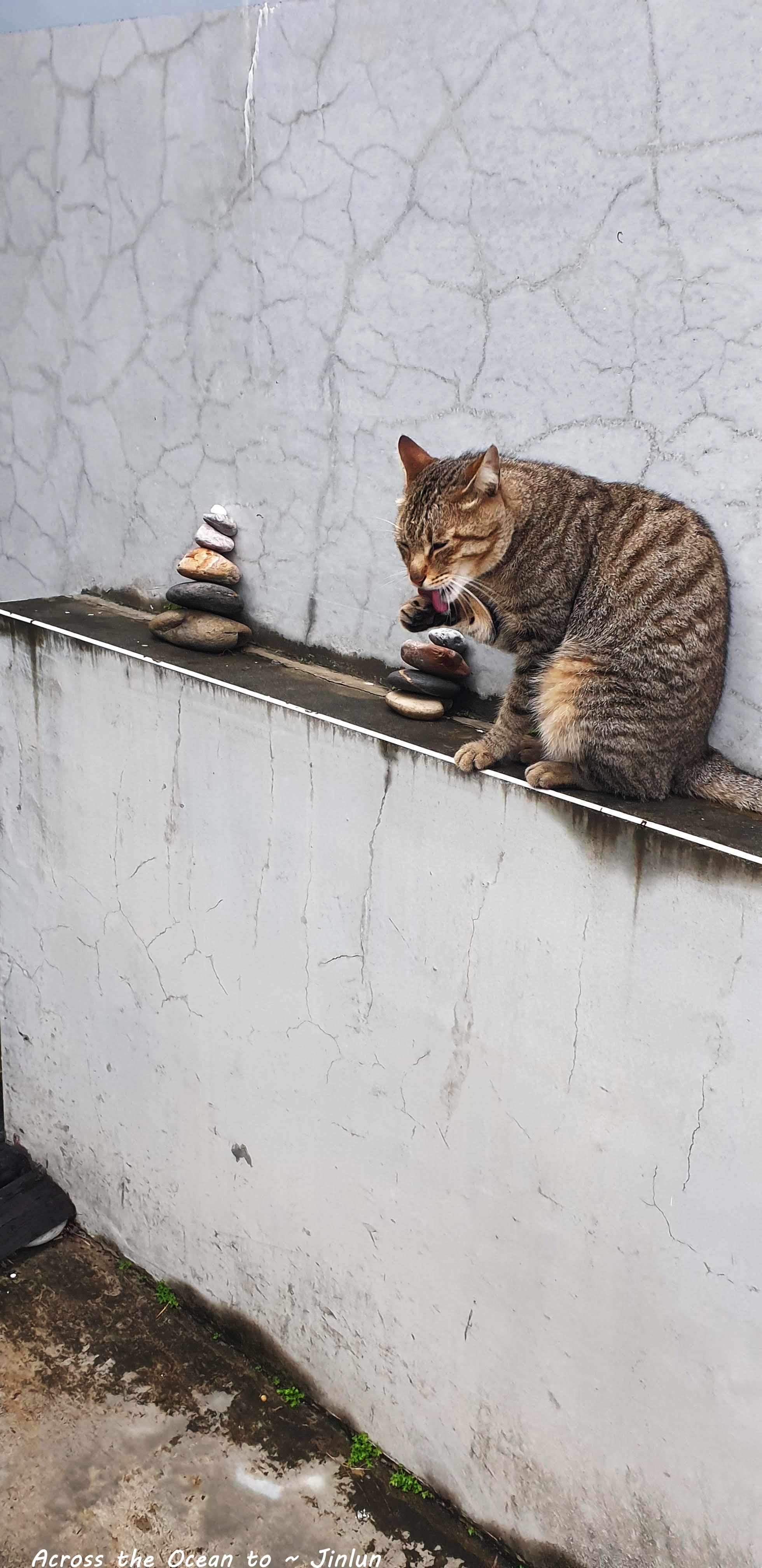 下起小雨,我趕緊回到民宿想在早餐前休息一下,一進庭院就看到這隻虎斑貓坐在牆上,我撐著雨傘走過去問,貓你不討厭下雨天嗎? 怎麼自己在這淋雨呢? 沒想到貓咪就一路跟著我到房間門口😆😅。