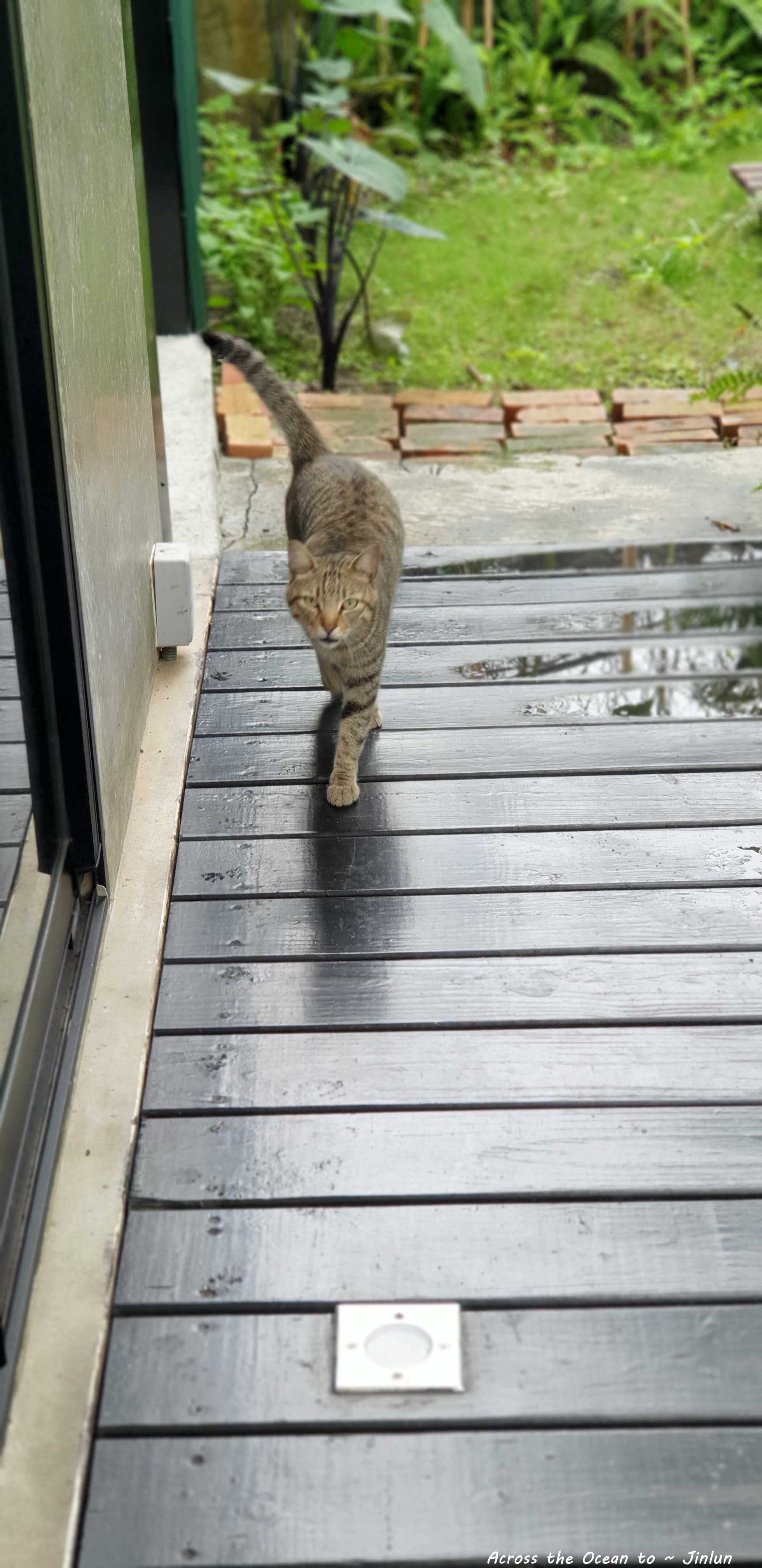 貓咪看著我進房間,似乎是很失望我沒有讓它進來躲雨,親愛的,這是民宿我不可以讓你進來,對不起啊🥺。