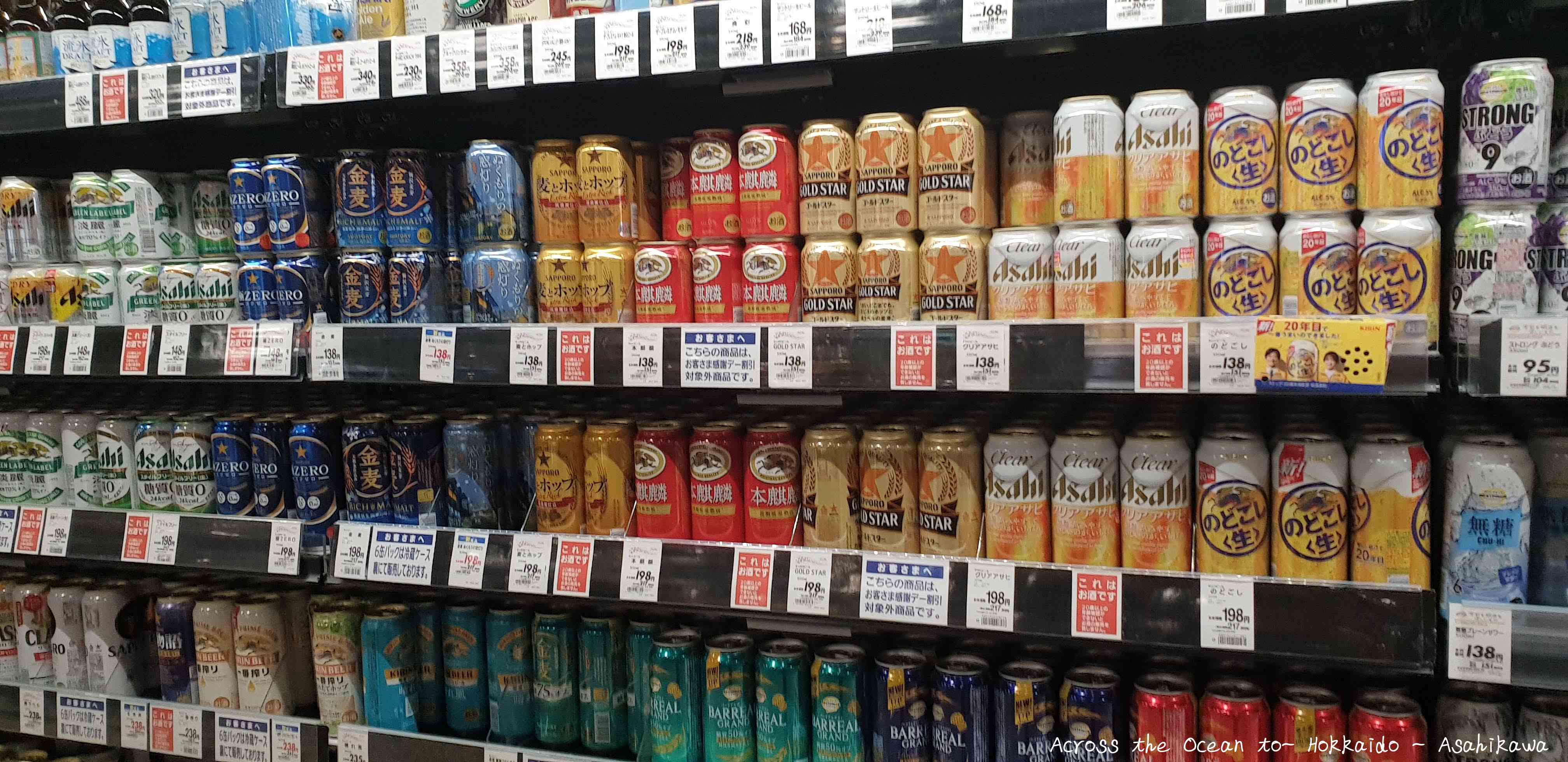 AEON 旭川站前店的超市我覺得超大,有點像台灣的家樂福,光看這啤酒櫃…😍😍😍,在台灣我已不太喝啤酒,但第一次到北海道嘗試道SAPPORO經典款,覺得驚為天人後,2024年第二次來又發現新的酒款,這一排我眼睛都花了。或許是週五傍晚時間,很多家庭或下班的上班族拿了好多啤酒,我觀察著大家拿哪種牌子,特別是女生一拿都比男生多,果真不管台灣或日本週五下班後都是上班族想放鬆一星期最沒有壓力的時光😆。