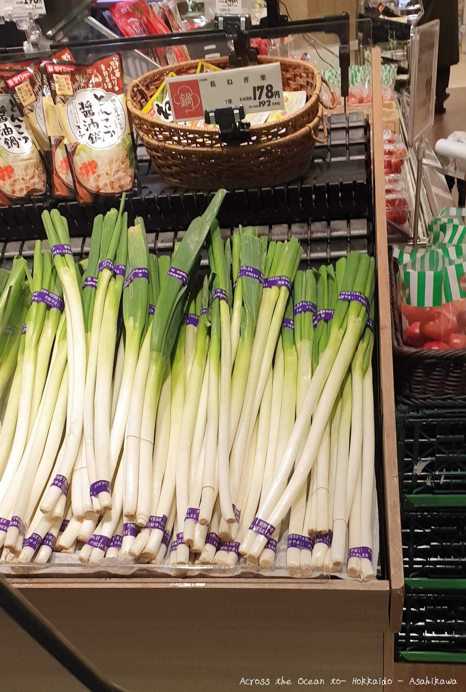 我拿起籃子像是台灣逛超市一樣自然,當我看到這個大大的蔥😳…腦裡畫面竟是韓劇中大媽拿著大蔥打人的畫面,果真這蔥夠長夠大,哈哈哈~我看價錢日幣¥192含稅。我不會做菜,印象中好像只有宜蘭三星蔥比較大,其他都是一般小小的😆。若是我住的是有廚房的Airbnb我一定會買來試試,但我只會蔥炒蛋…哈。