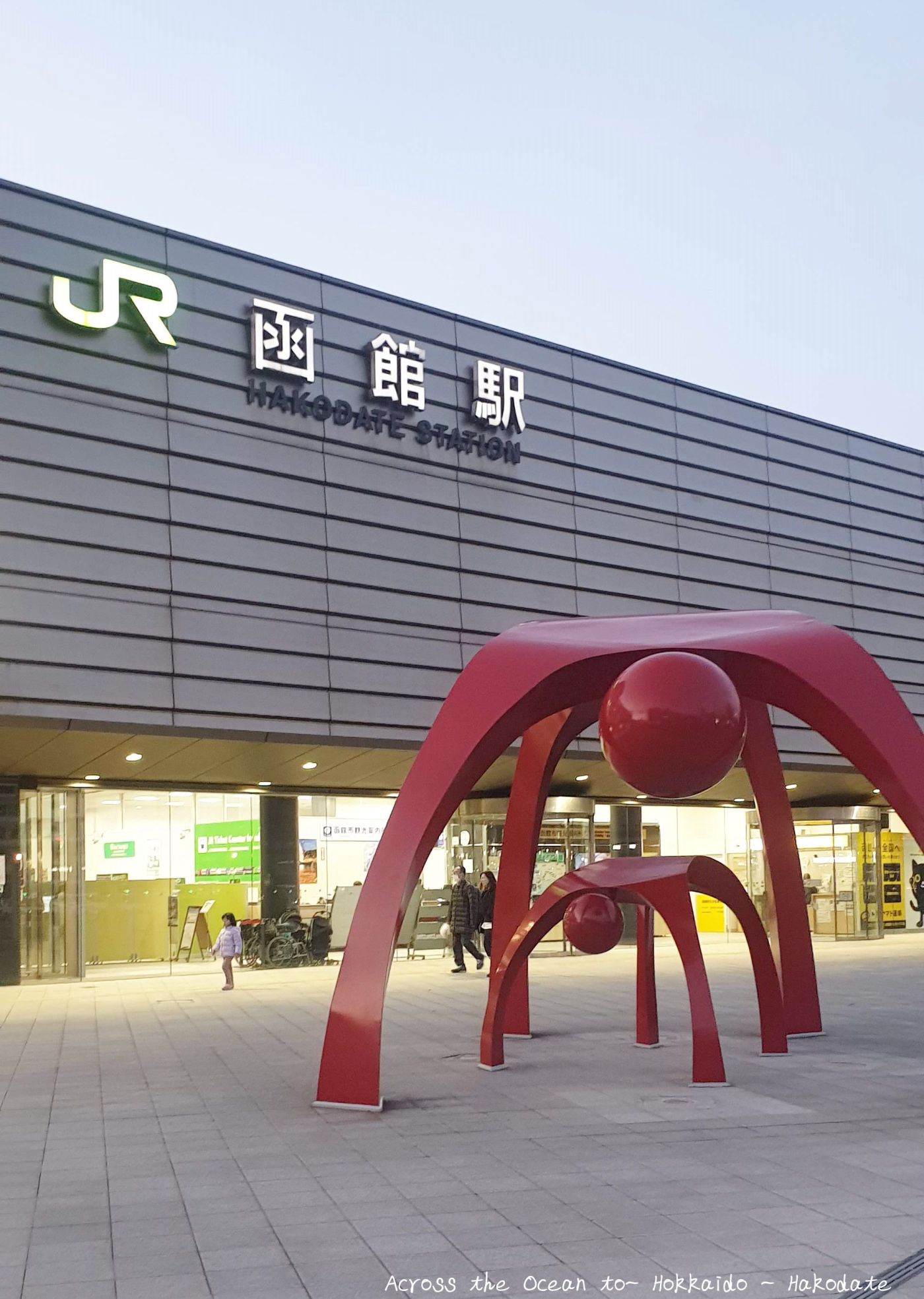 傍晚前我站在函館(Hakodate)前,我終於來到這裡了,一切都好新奇,我喜歡這種拜訪一個全陌生的城市的感覺。我拉著行李看著眼前的這個城市,充滿旅客及沿著丘陵的燈火,但此時我得先研究搭電車去飯店,真緊張啊😜~