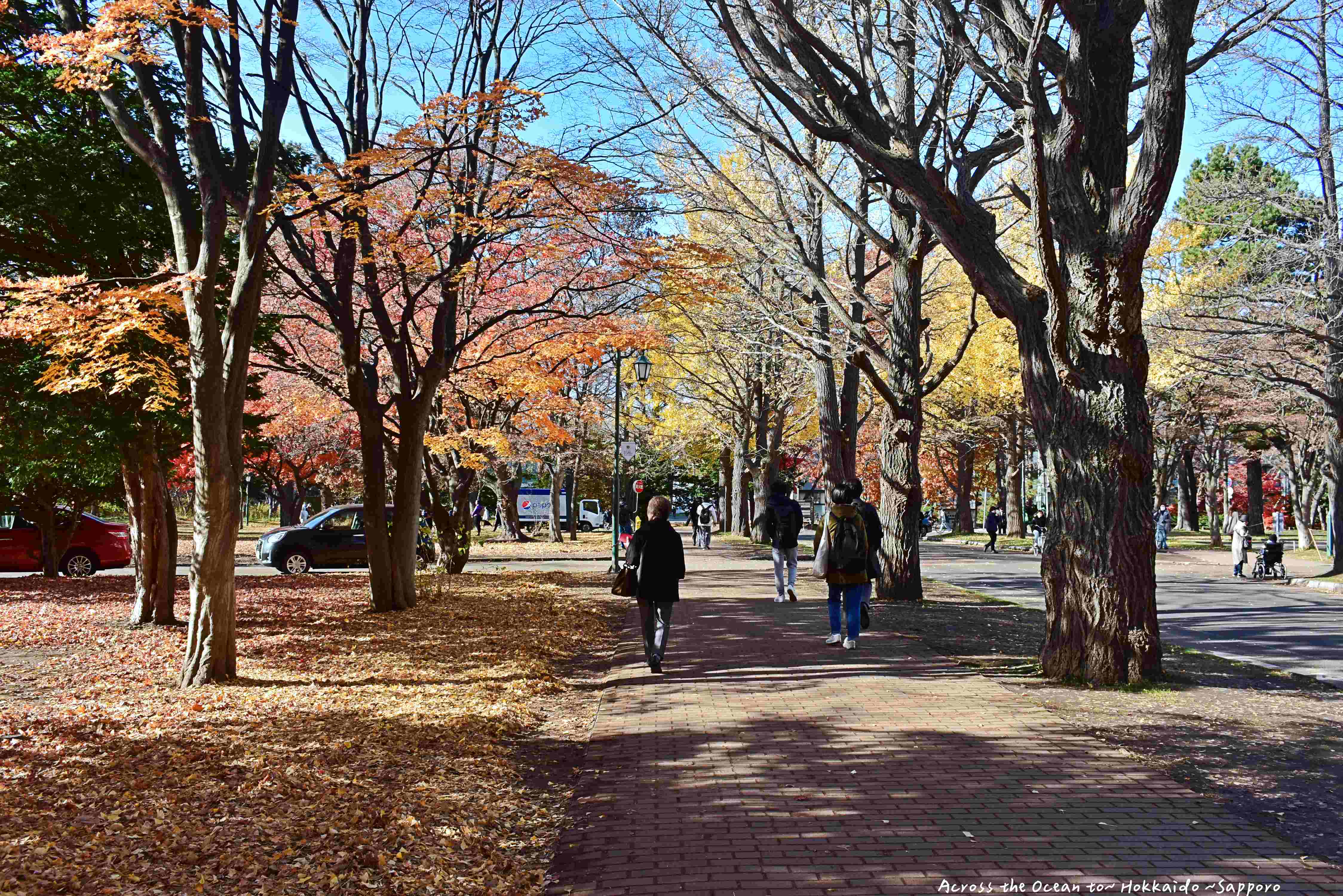 這條銀杏樹雖然不長,但能在北海道大學享受這景色,感受的深秋裡大學校園氛圍,身邊有著學生、工作人員、我想也有教授等在人群中吧。我想起2018年第一次去東京大學追銀杏的情景,北海道大學校園更是廣闊。