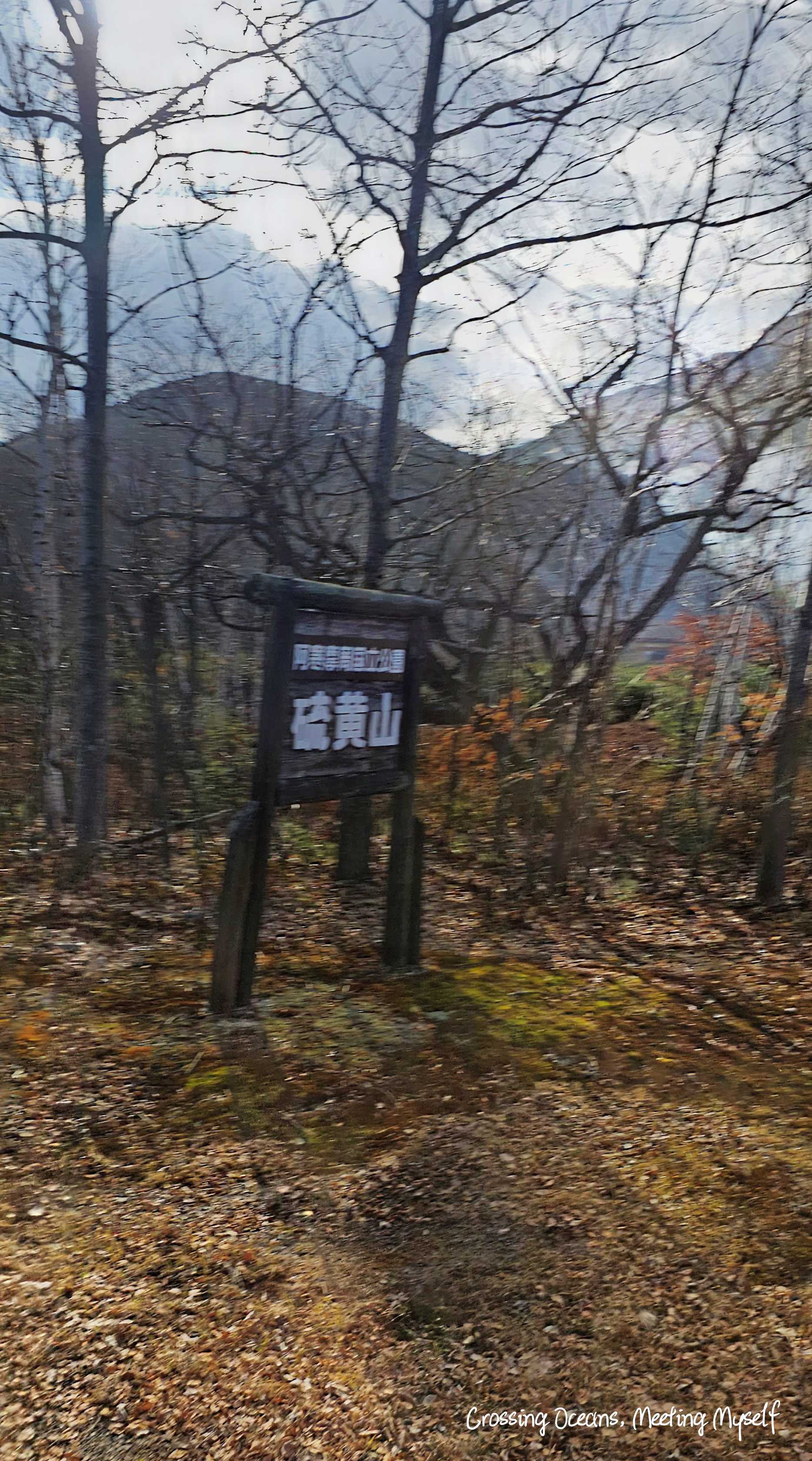 巴士準備前往下個地點,我透過車窗看著硫黄山最後一眼~再見了。