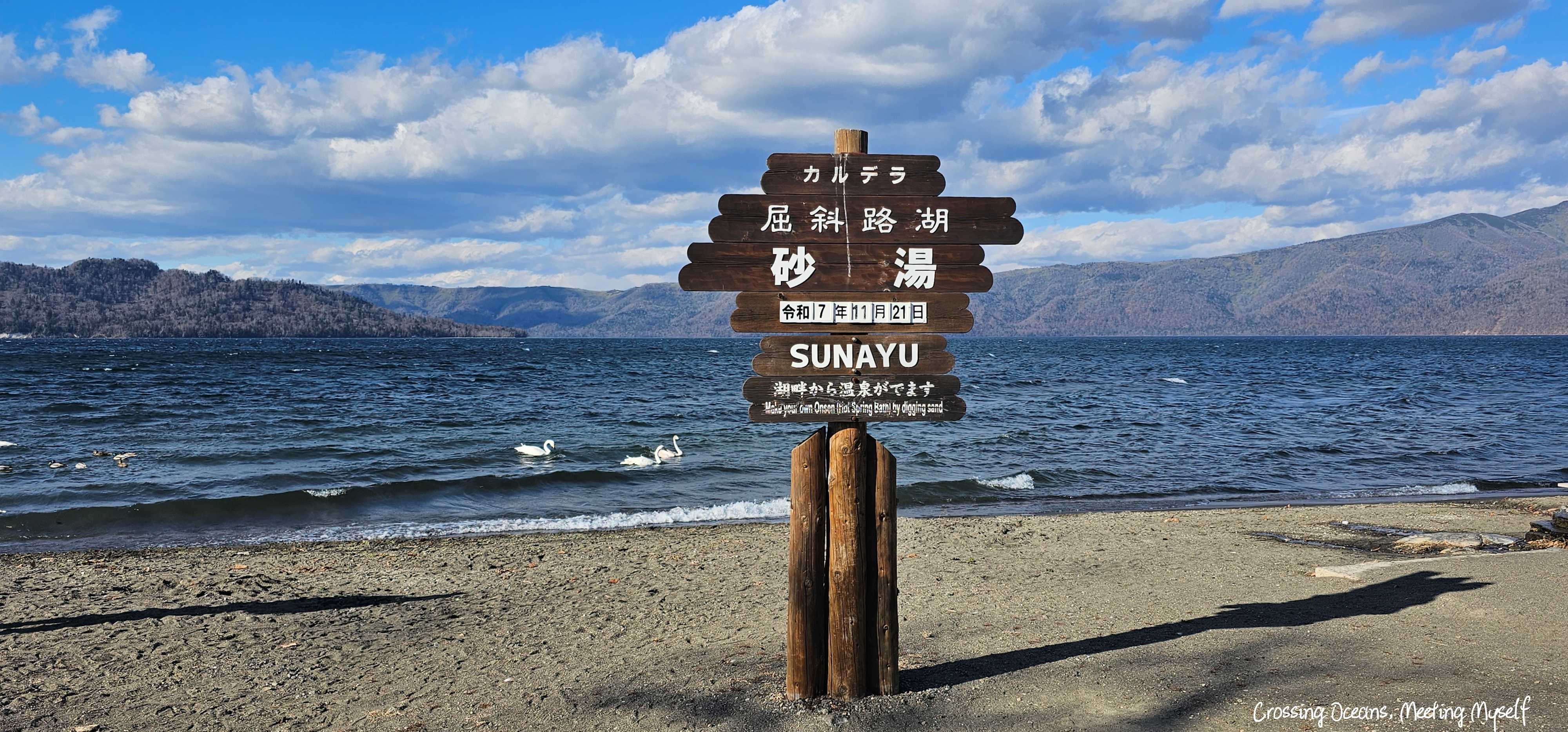 我來到了屈斜路湖,日本最大的破火山口湖。我也好奇為何叫砂湯呢? 原來是因為有溫泉。