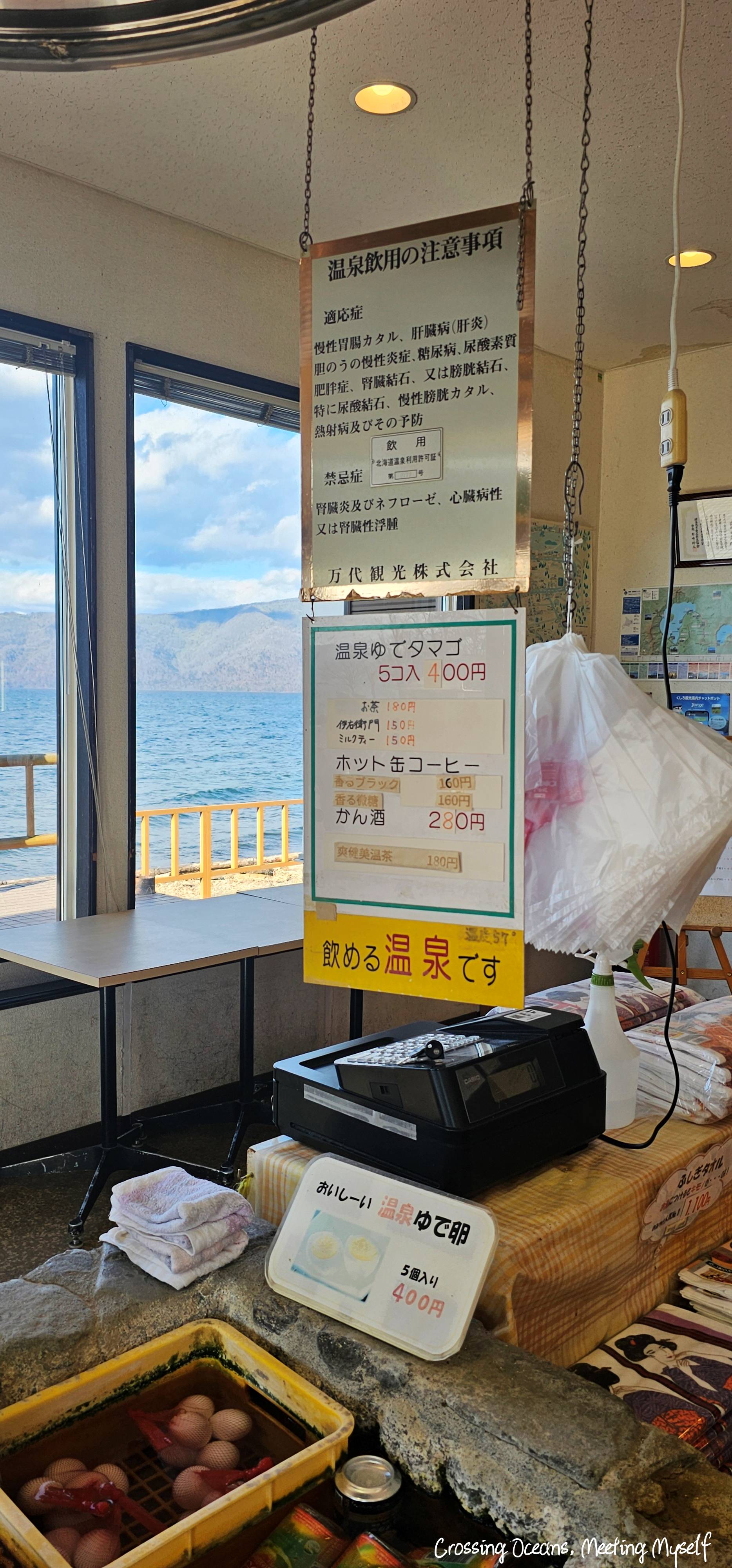 最後我依舊走進這的紀念品店,除了商品和之前二加一樣外,這邊還有個特別的飲用溫泉。含有溫泉蛋和一些飲料,蠻有趣的。