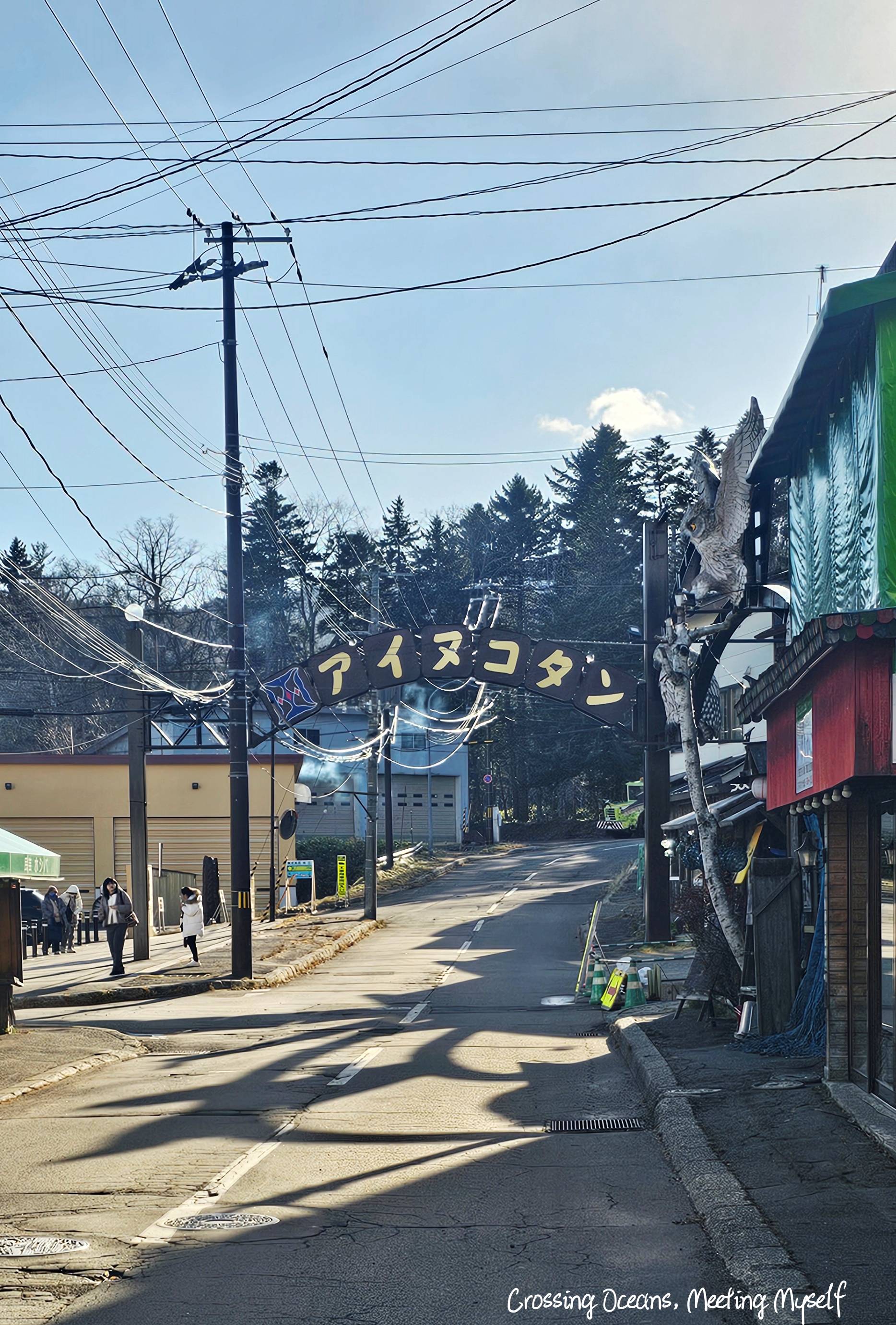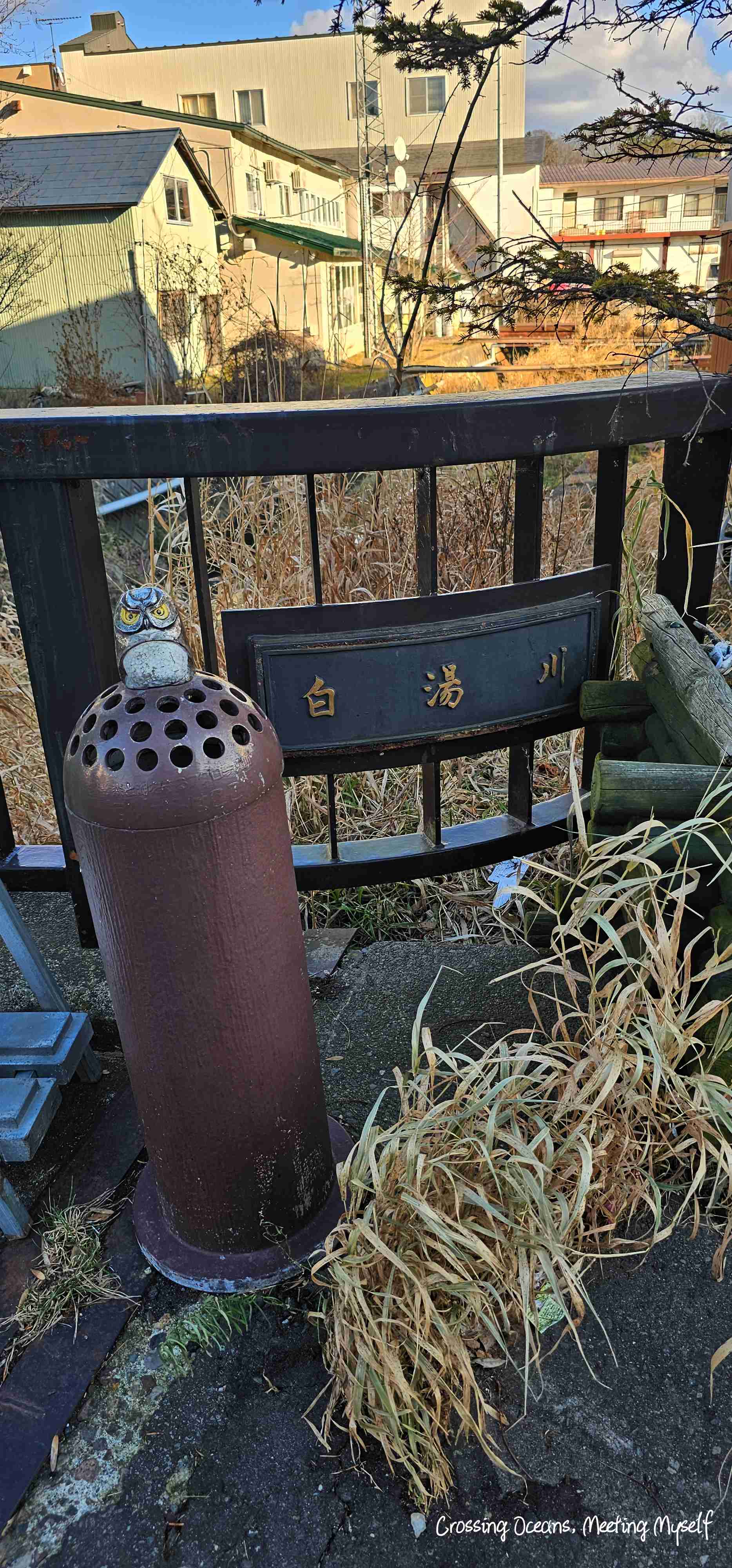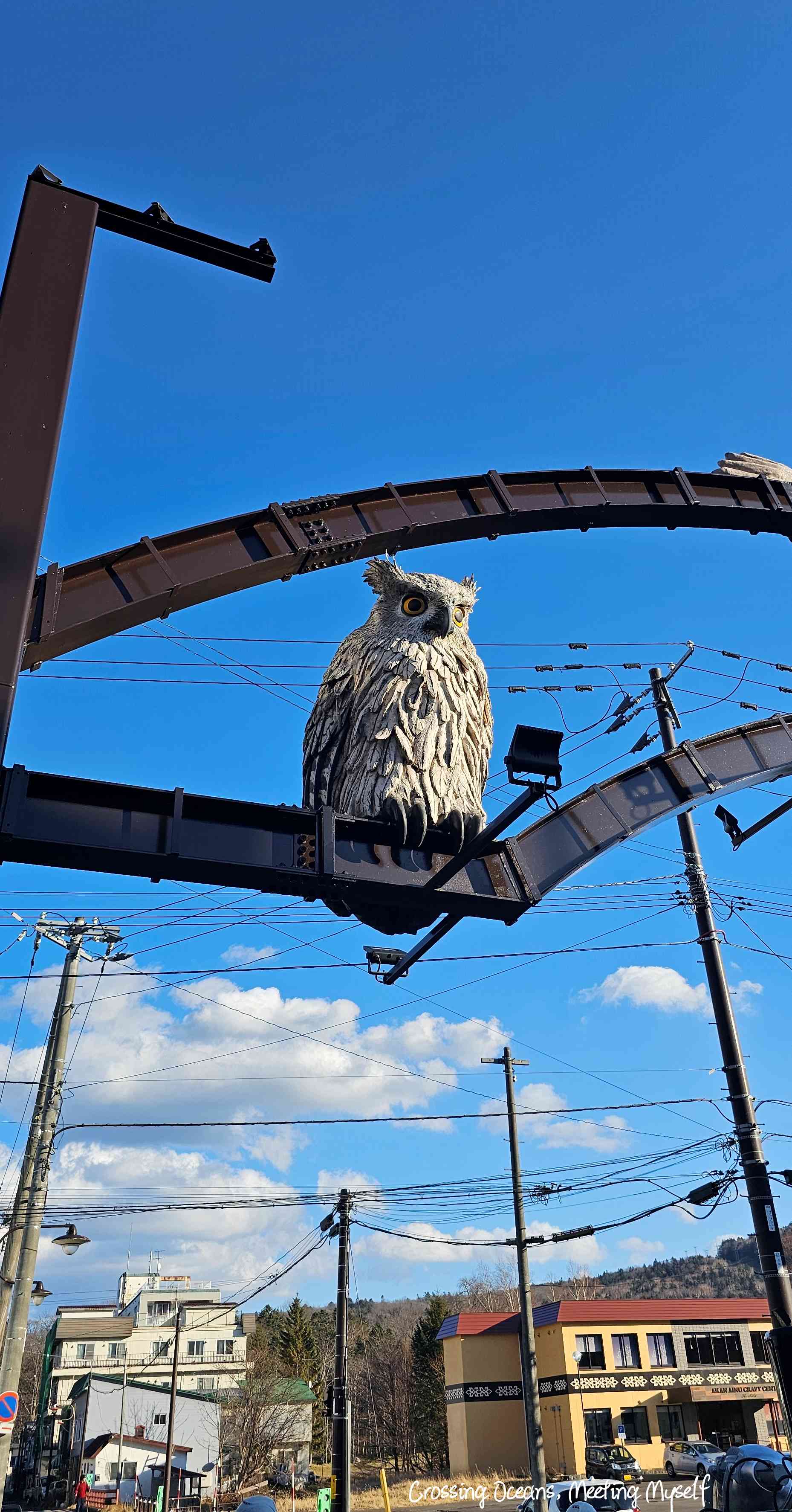 吃完還不到2點,我沿著街區漫步著,11月下旬是淡季吧,中午一個人感受的充滿文化;自然與陽光下的阿寒湖最熱鬧的街區,此時心情與感覺真的好舒服。這是木雕雪鴞嗎? 我背著背包走過白湯川,看到附近的住家時我總是會想這在這裡是怎樣的感覺呢? 我想心情一定和我這種觀光客不同。