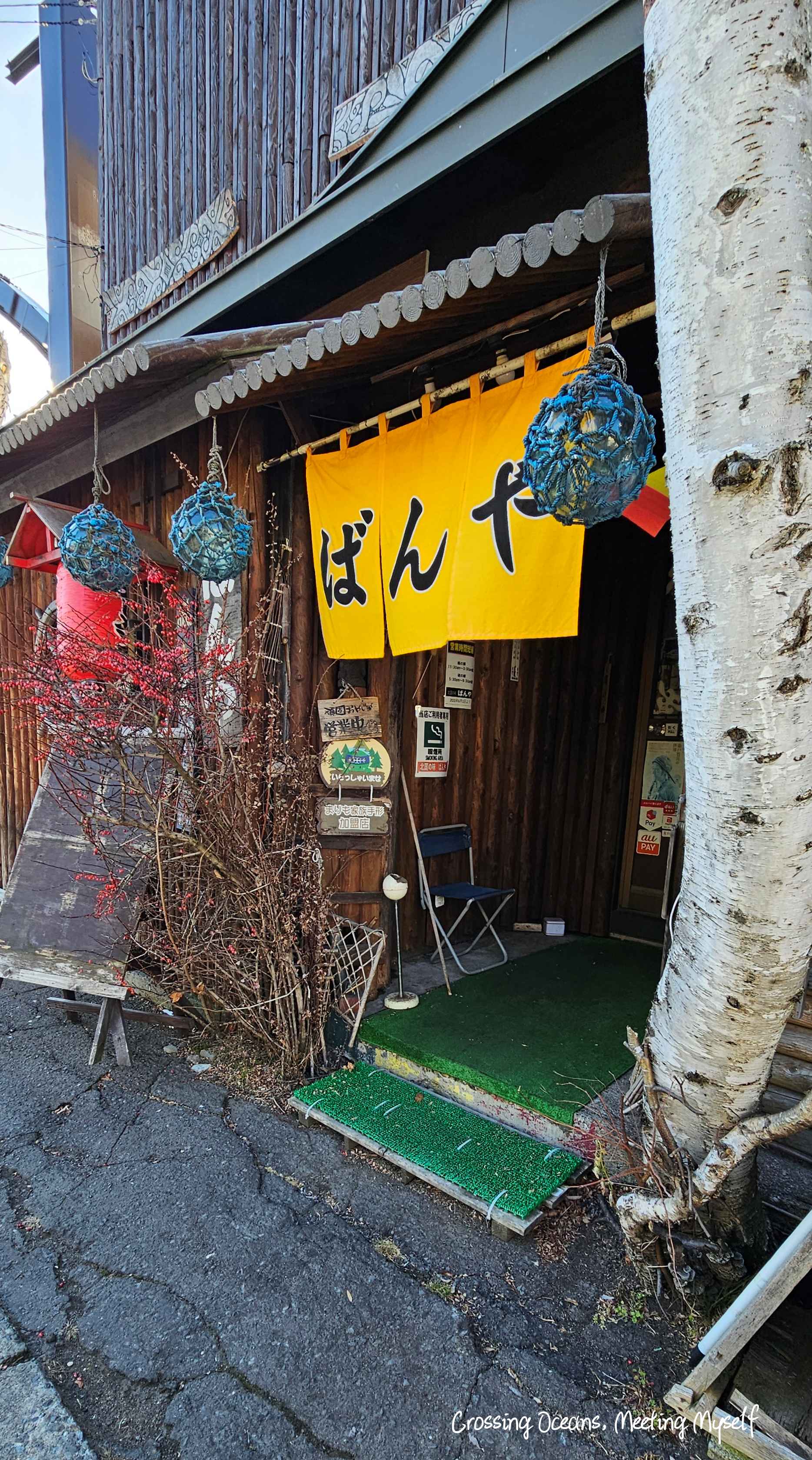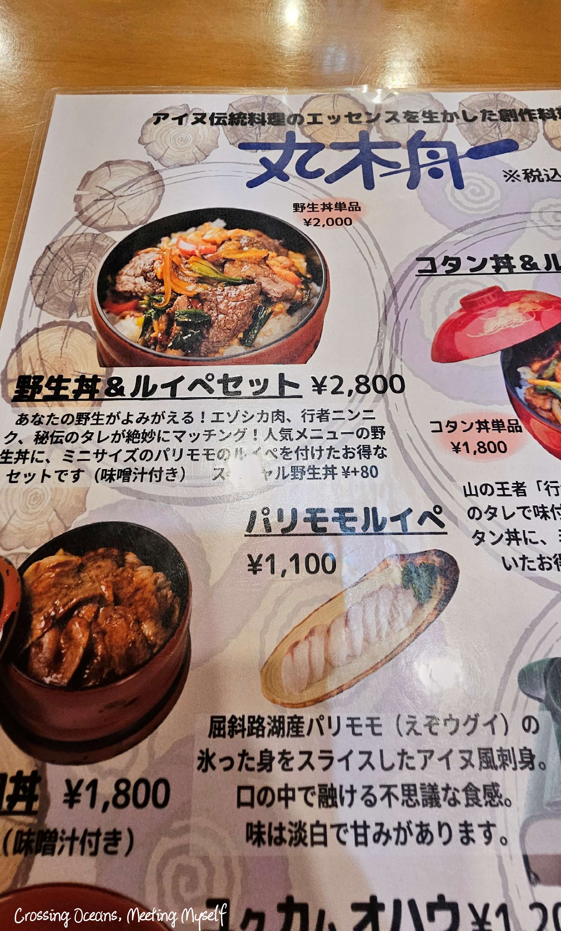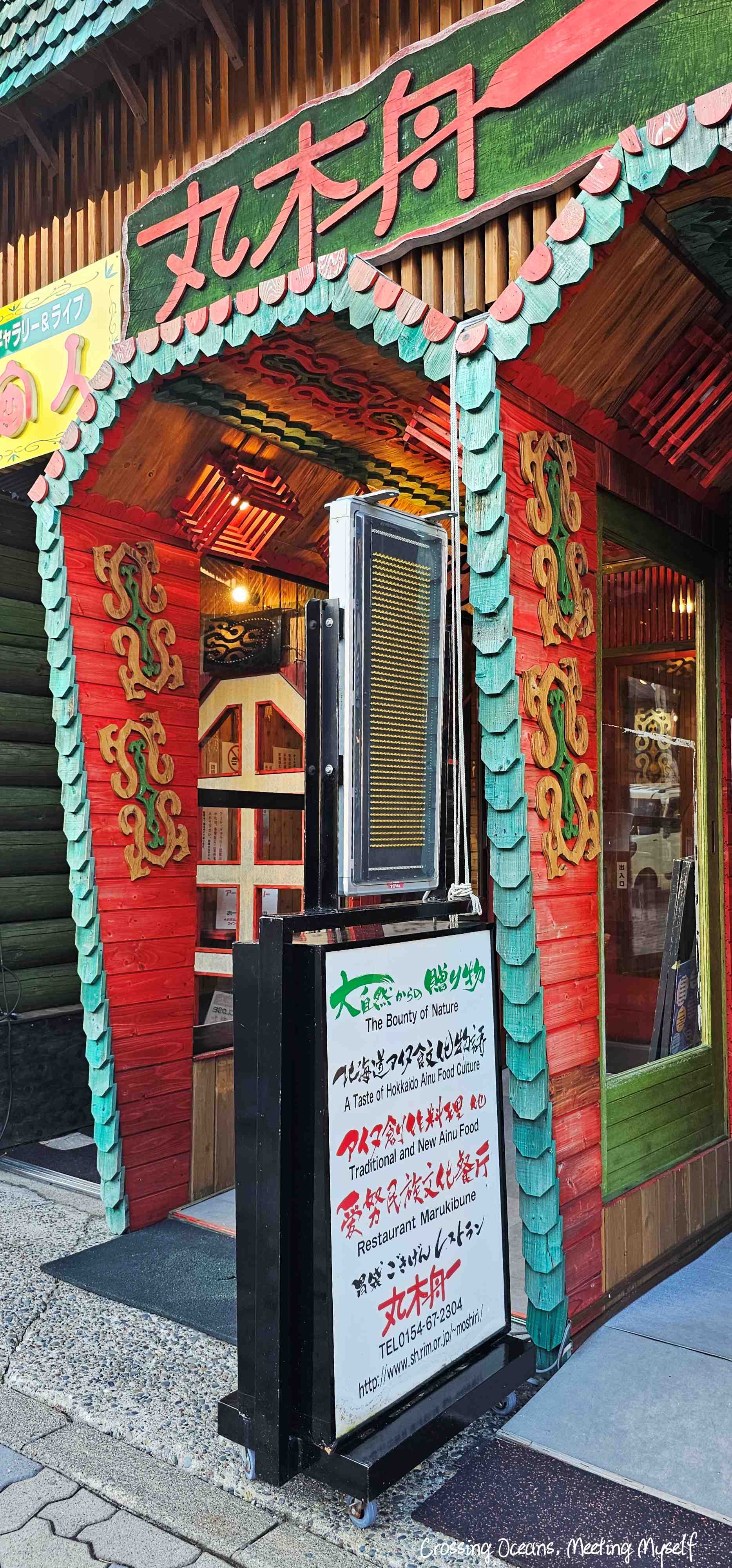 走出餐廳菜看到門口清楚寫的是愛努民創意料理。丸木舟 阿寒湖店(Marukibune Cafe)官網裡這裡似乎還有民宿,但我不確定,但能這在民族風的房間也真的很棒。
