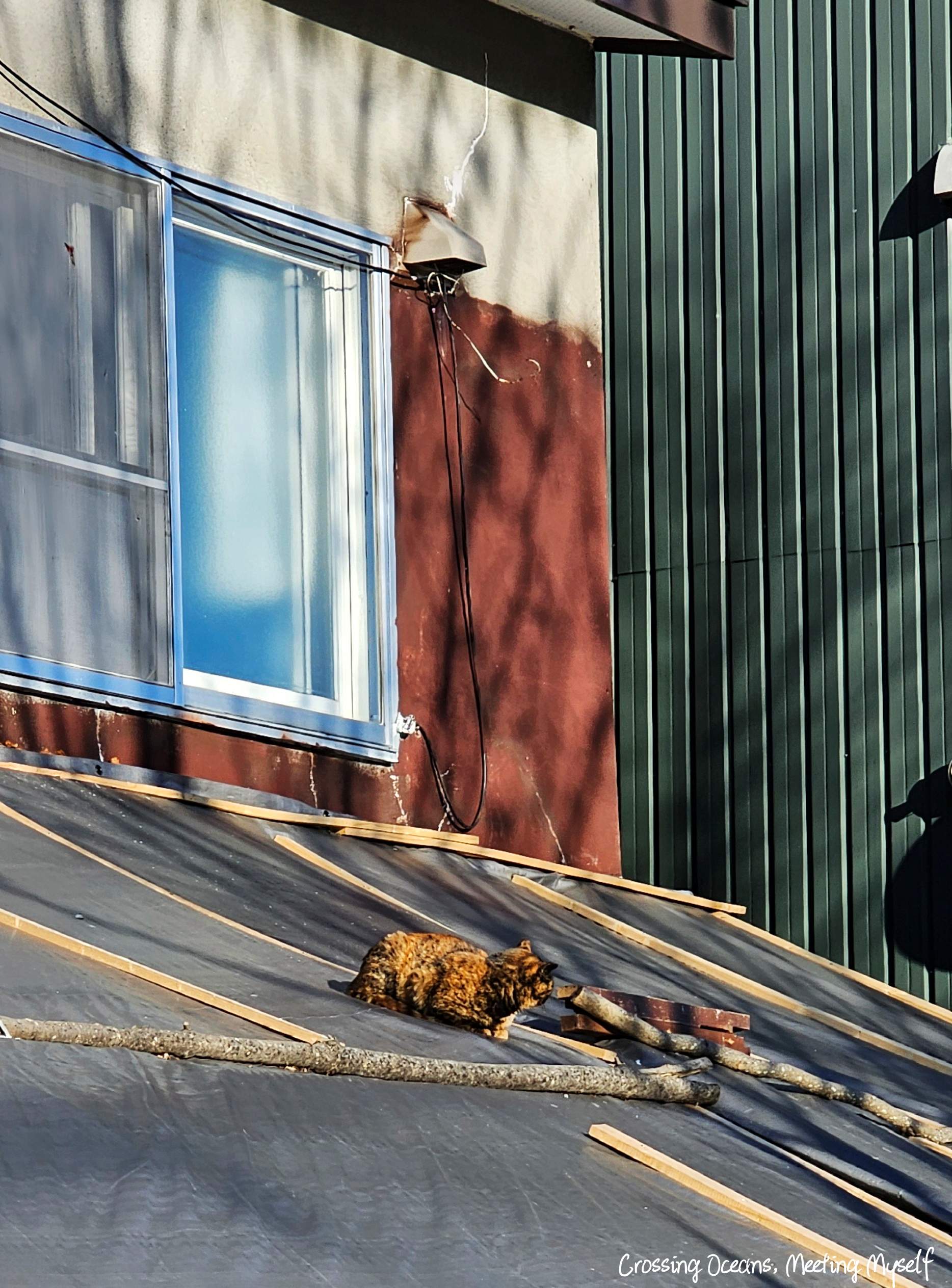 ㄟ~貓咪耶😍🤩是一隻深色虎斑貓,棚子上慵懶的曬著太陽睡覺,我怎樣發出聲音都不理我,哈哈哈~