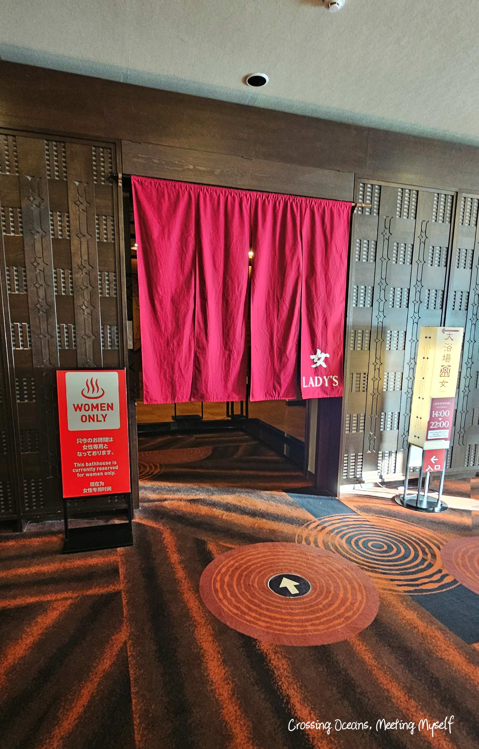 上了一層樓梯我終於看到女湯的入口了,進去宏布鞋櫃,接著就是一個完全放鬆及美景的泡湯區域。🔻🔻
