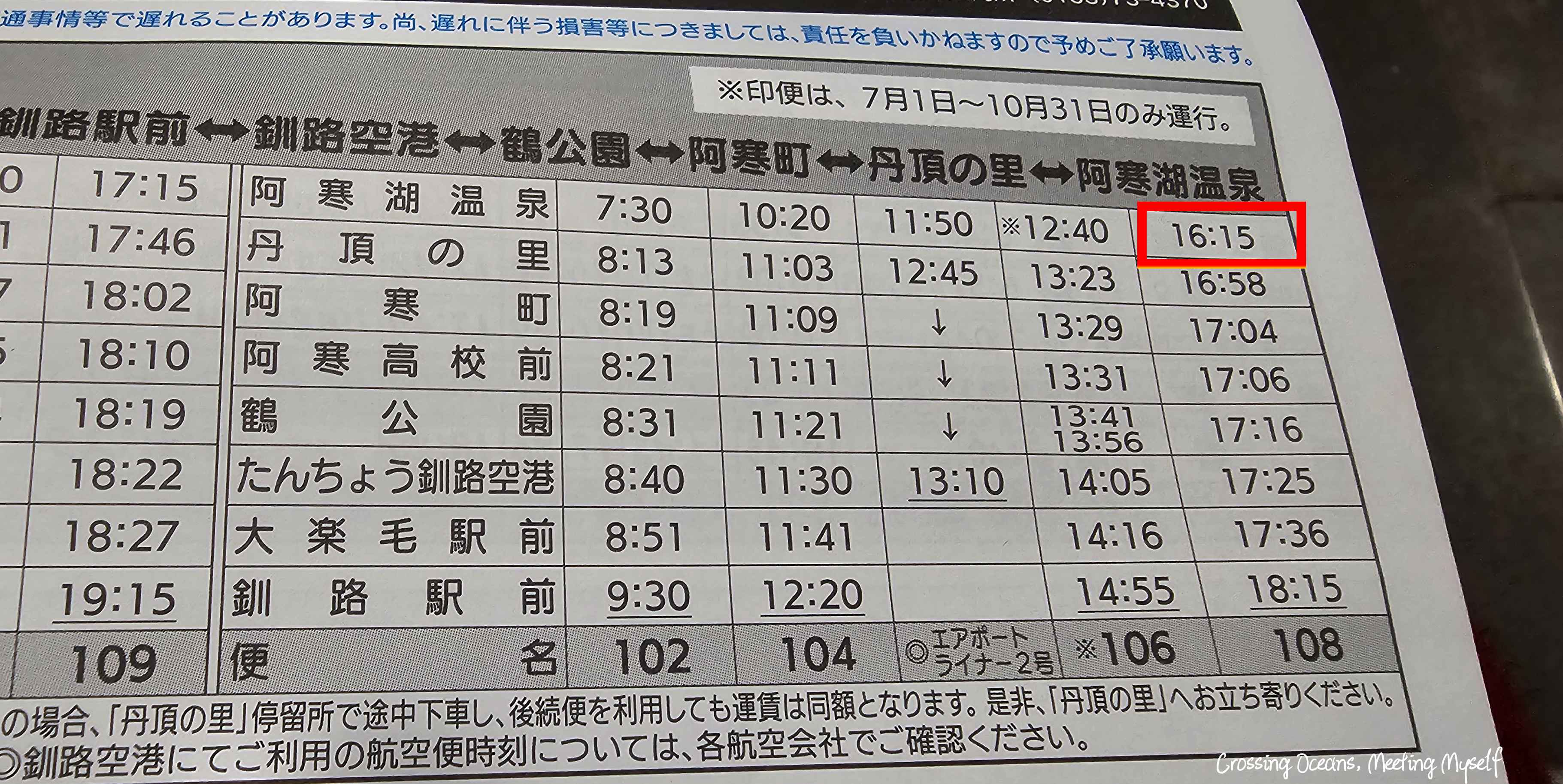 🔻🔻回釧路市區的巴士時間,我一定要搭乘16:15從阿寒湖巴士中心發車的班次。不然我就要在阿寒湖找飯店了