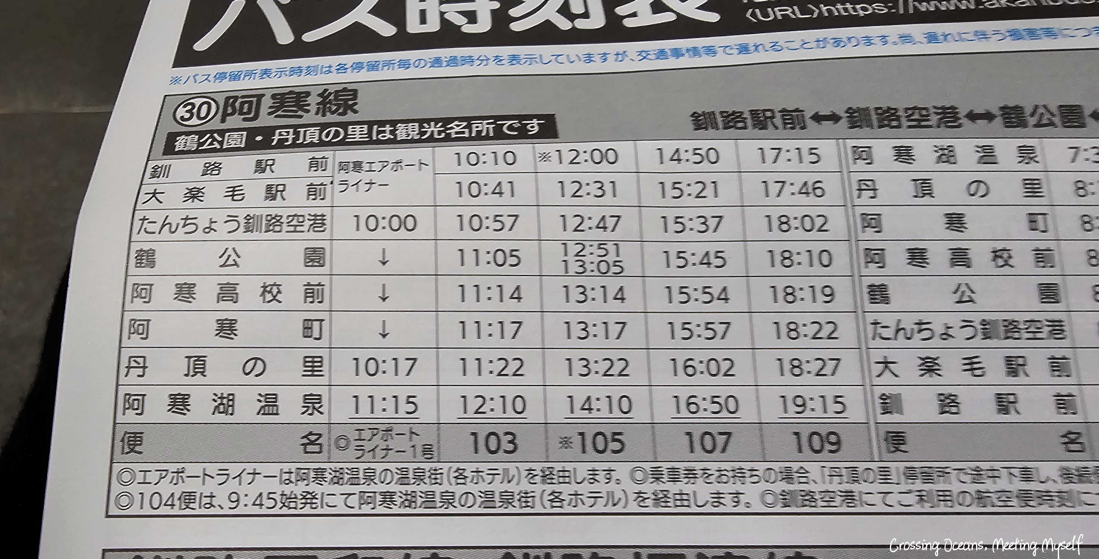 🔻釧路市區、釧路機場到阿寒湖的巴士時間。
