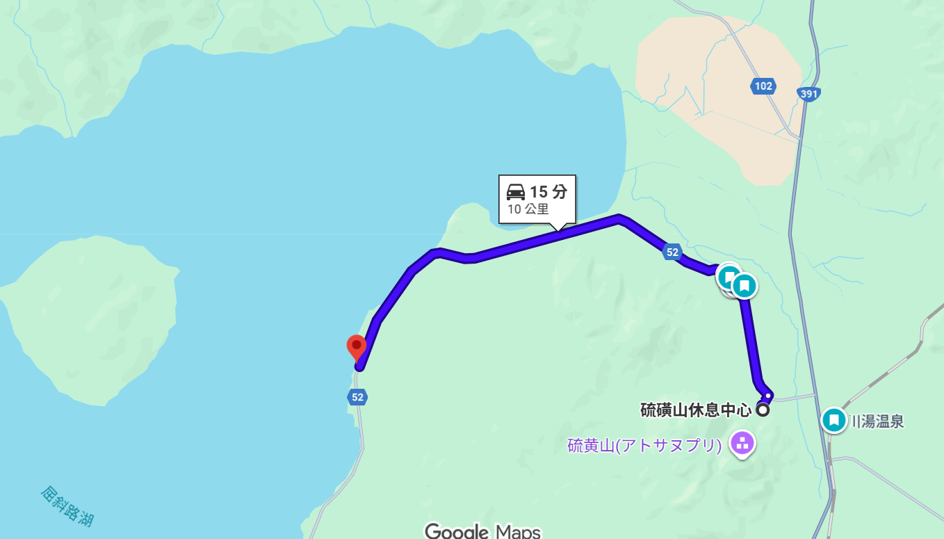 硫黄山開到下一站砂湯只需要15分鐘內,看地圖原來就在旁邊阿。