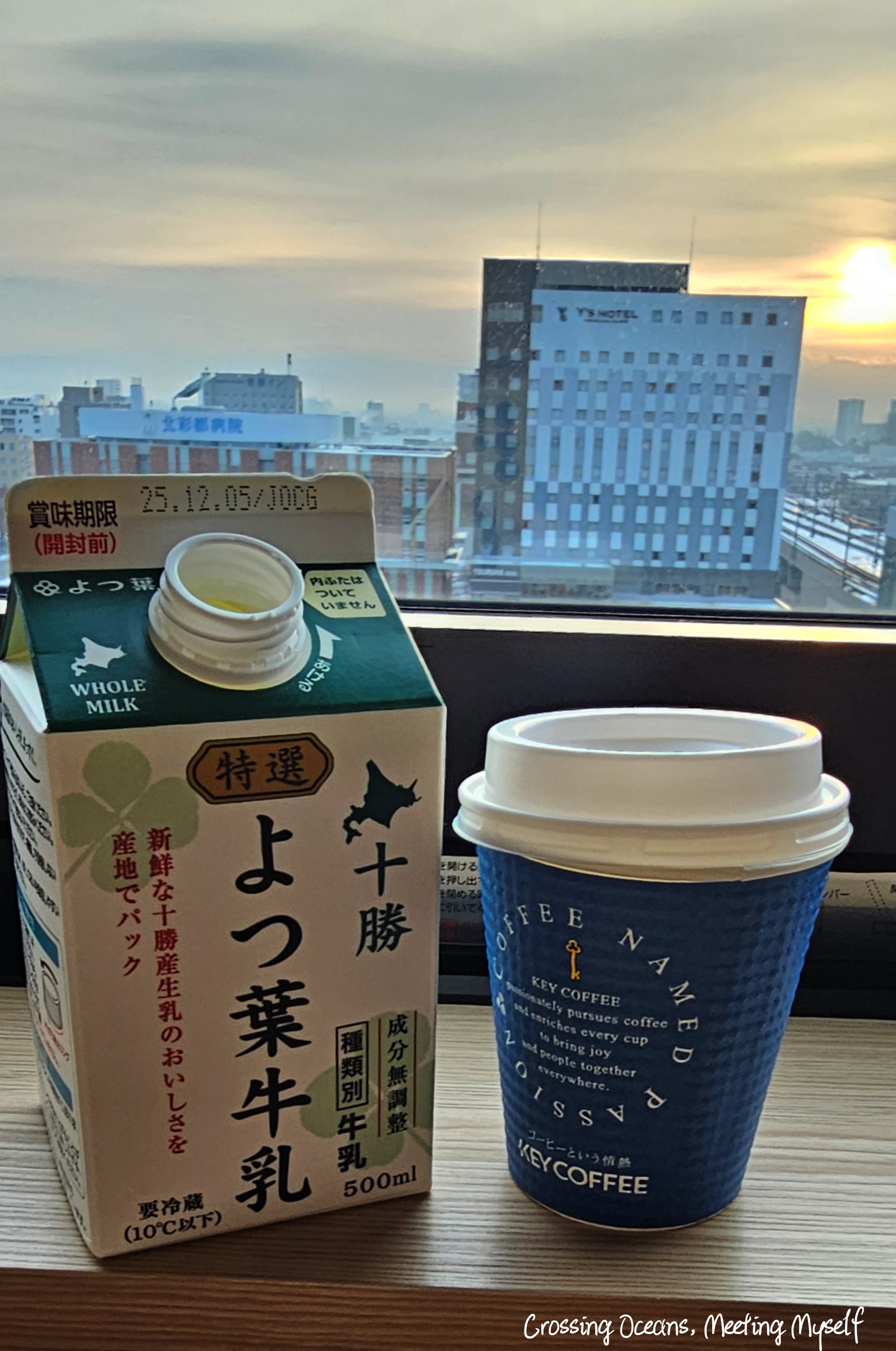 每天我都會買北海道的牛奶搭配著飯店的咖啡及三明治,欣賞著窗外景色,昨晚旭川下了大雪,這樣吃著早餐看著雪飄下來真的好愜意。