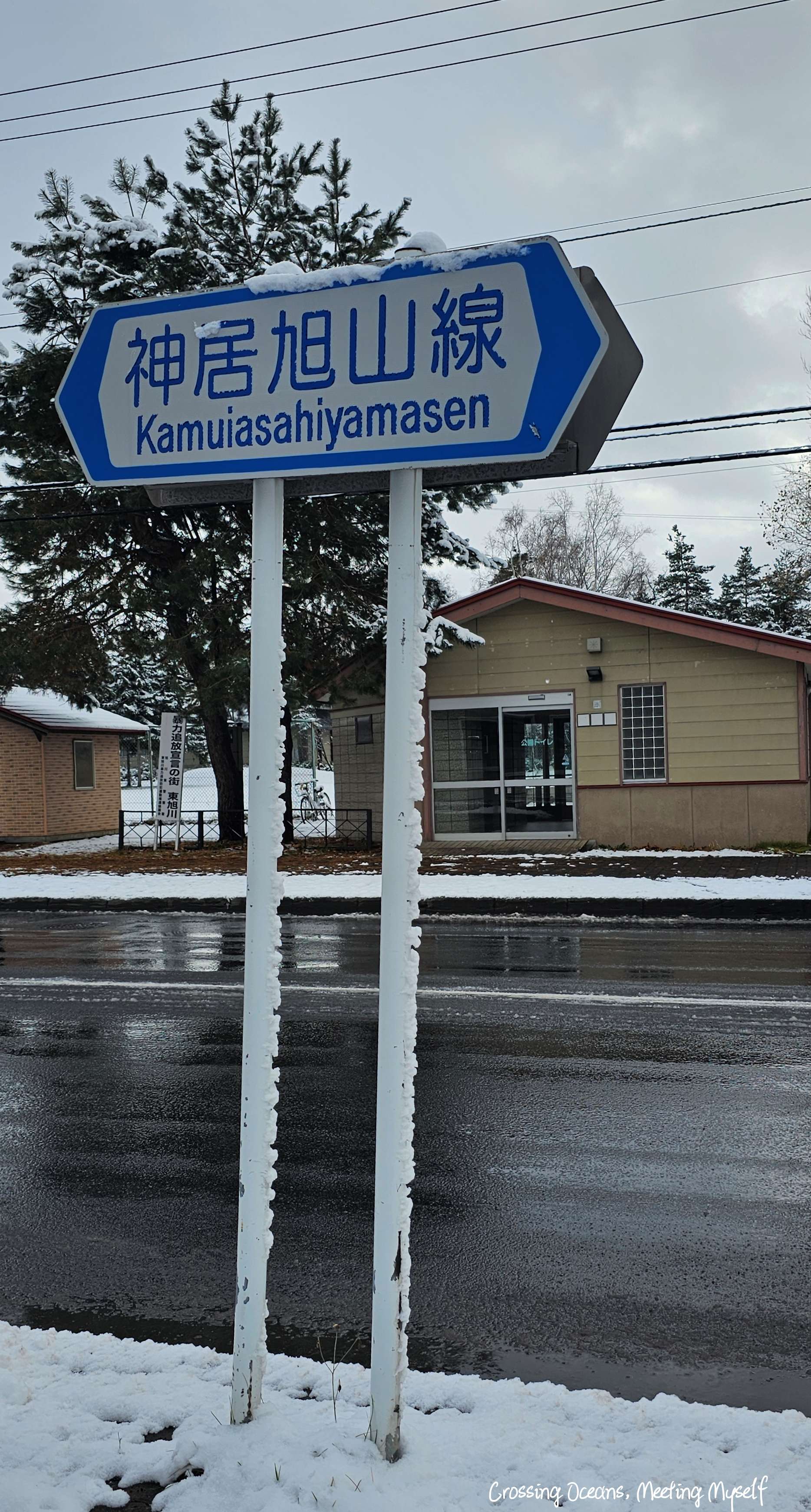 往前走幾步我看到【神居旭川線】我想這是指旭川神社嗎? 原來是往返於旭川市區與神居滑雪場(Kamui Ski Links)的交通路線,我誤會了😅。好在我注意到馬路對面的鳥居,我找到了。