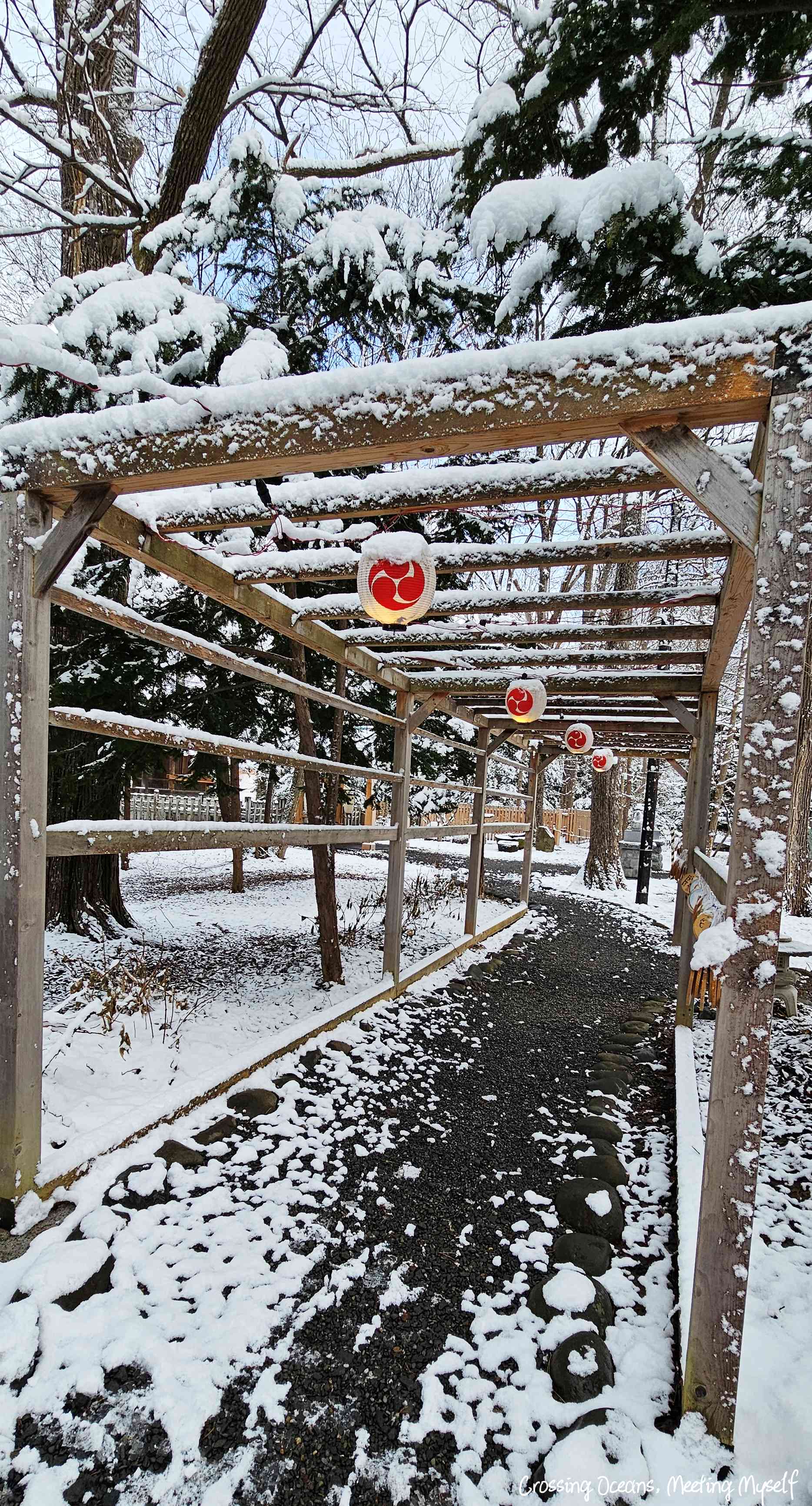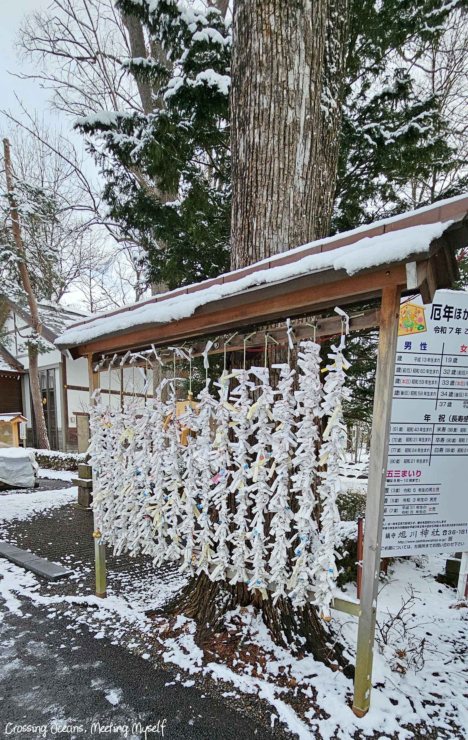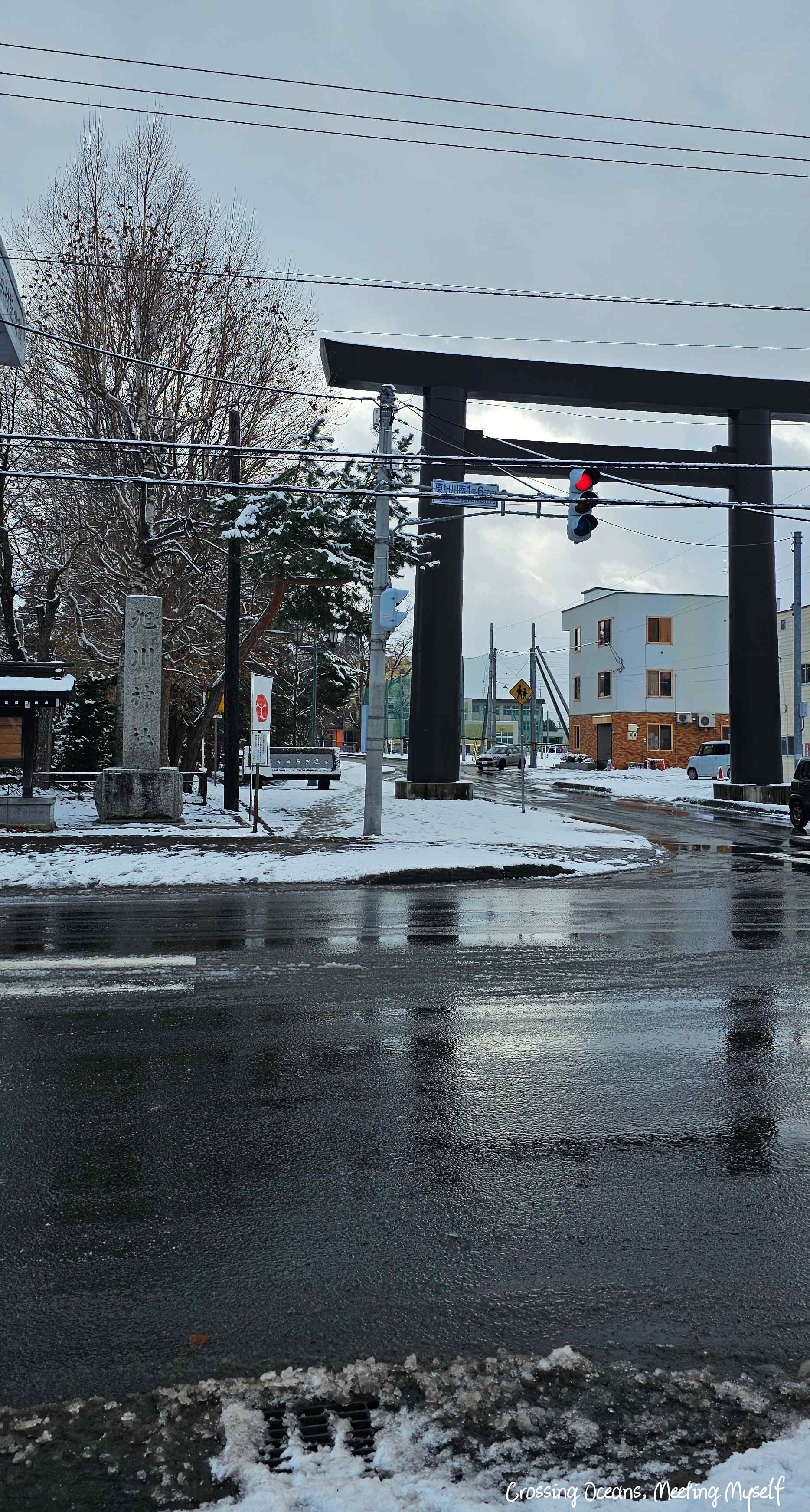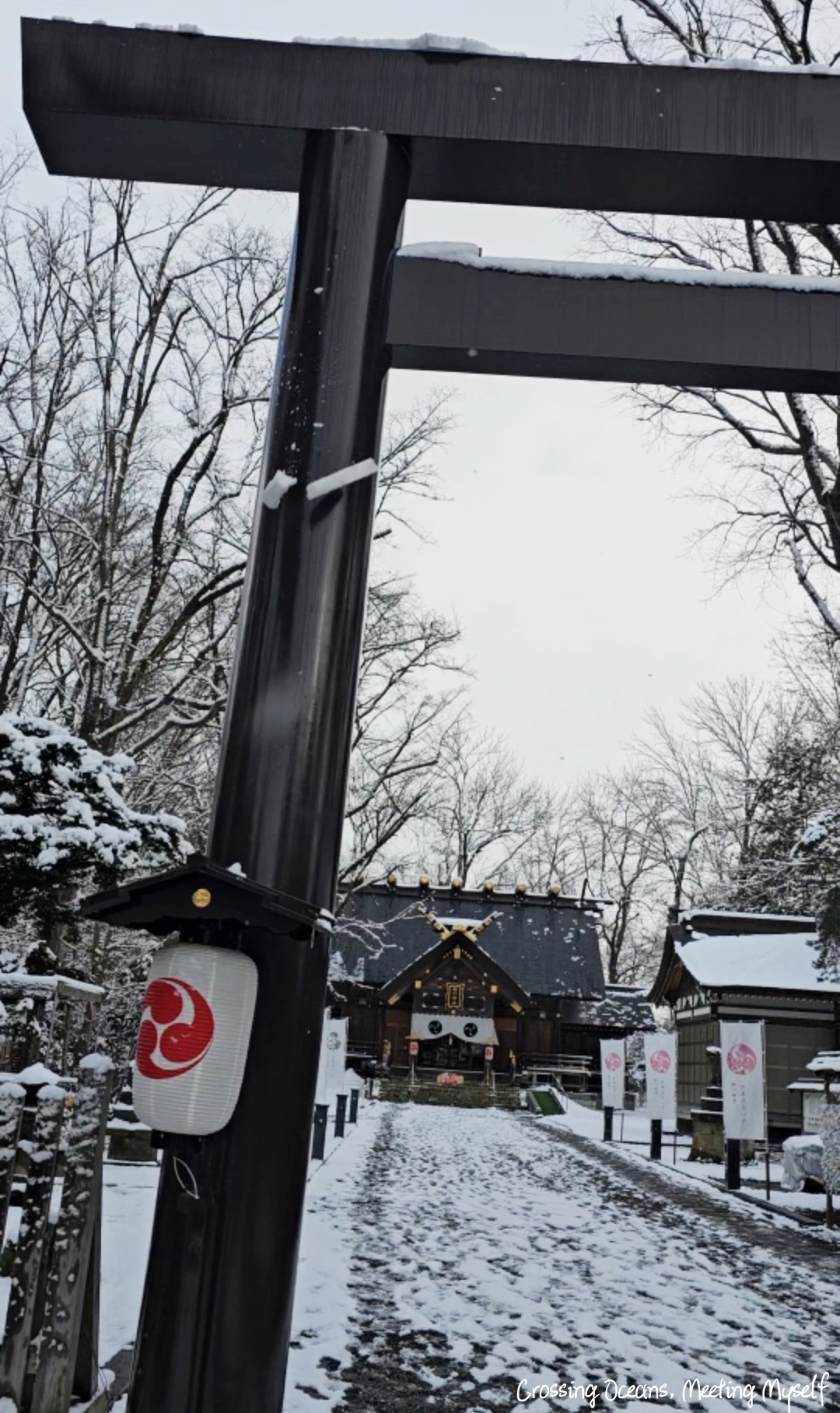 走到⛩️旭川神社⛩️們口,我望著巨大的鳥居,鳥居上的木頭此時正因為積雪重量,雪一大片一大片的落下來,好神奇阿…(這種想法真的好土ㄡ~沒辦法,亞熱帶的人生中很少看到雪)。
