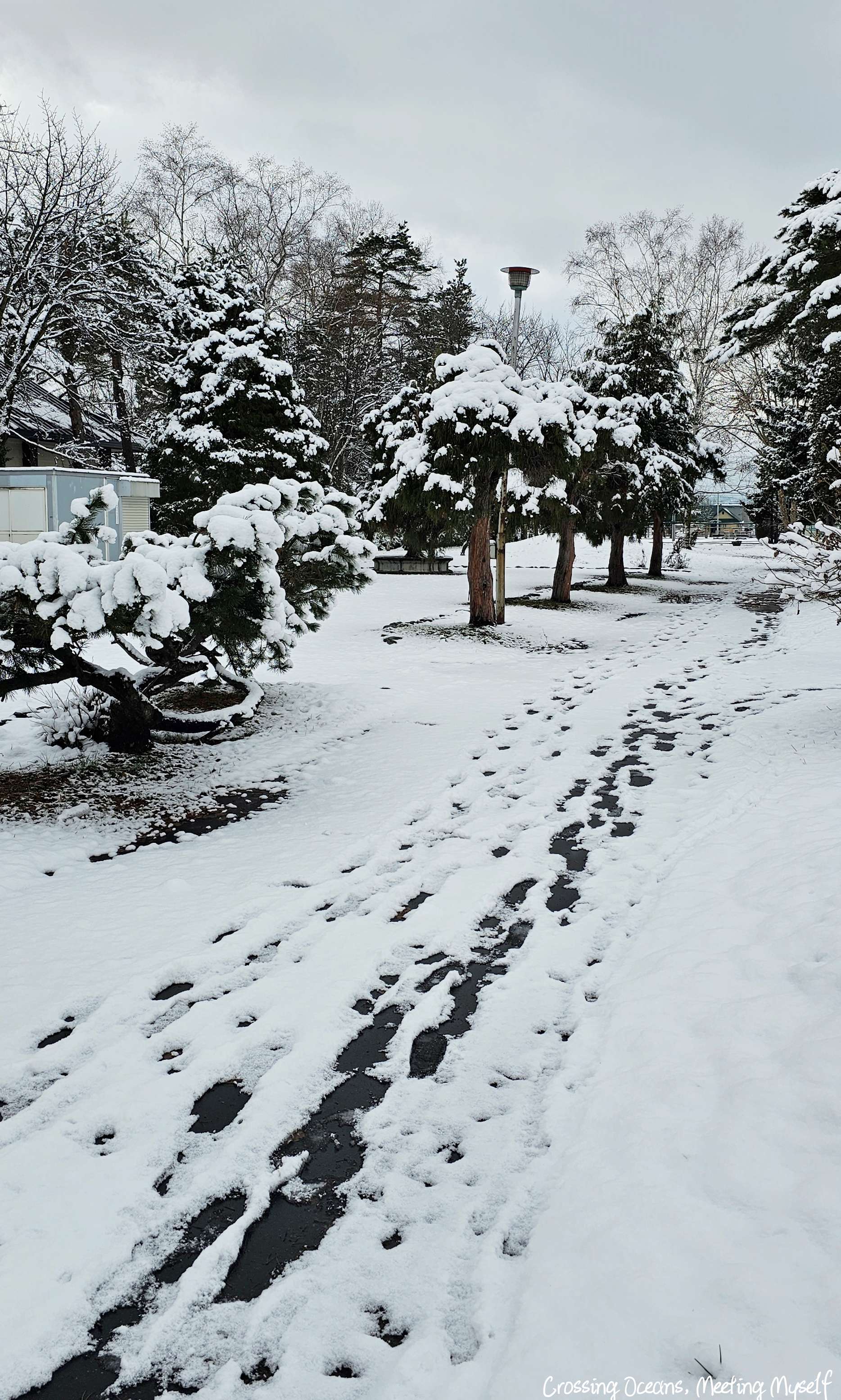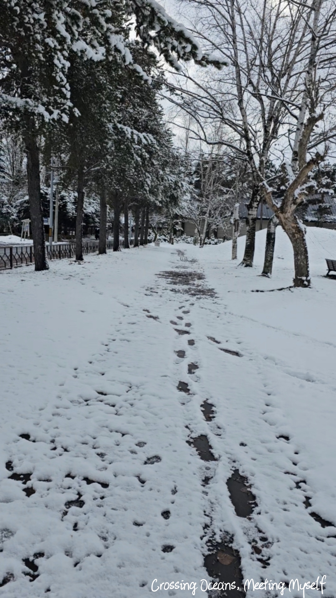 我喜歡走在雪地的感覺,第三次來北海道這次我準備簡易冰爪,就算雪不深,但我還是戴上它,畢竟我不想滑倒,或是每踏上一步都會擔心😅,用上冰爪走在雪地上磨擦聲比較大,更讓我體驗走在雪地上的感覺,我就像小孩一樣到處跑到處用力的踩雪,聽著冰爪摩擦雪地的聲音。