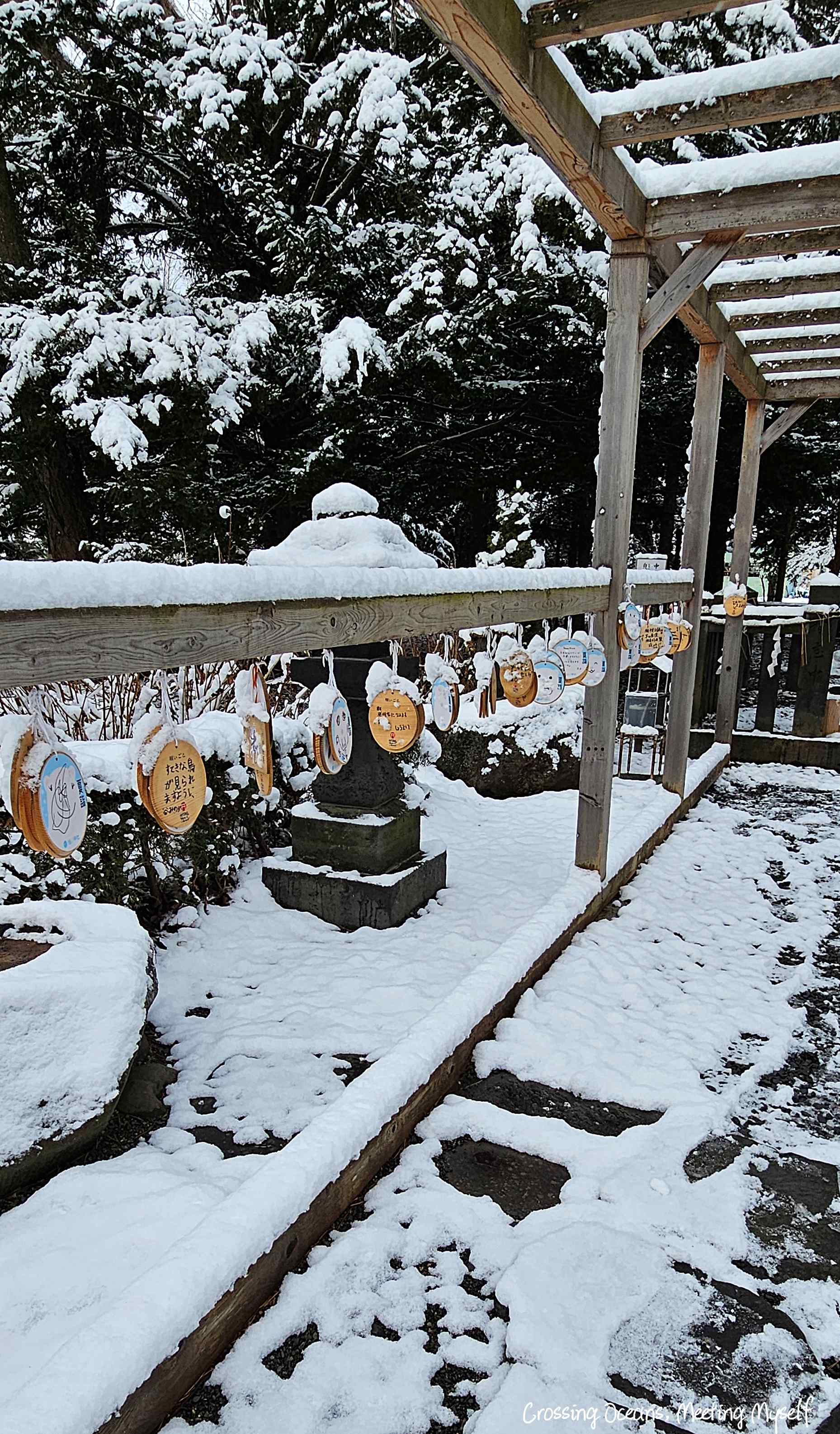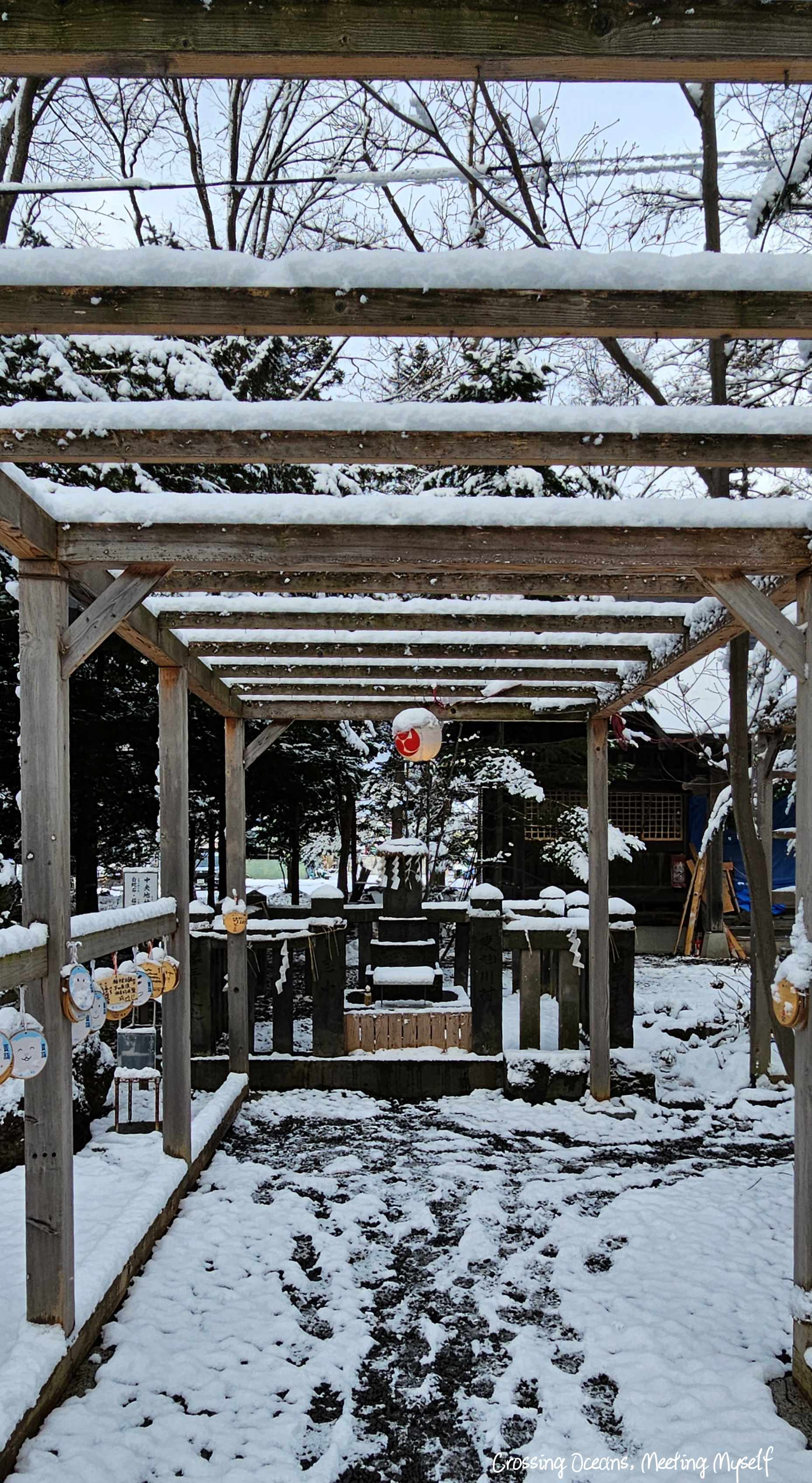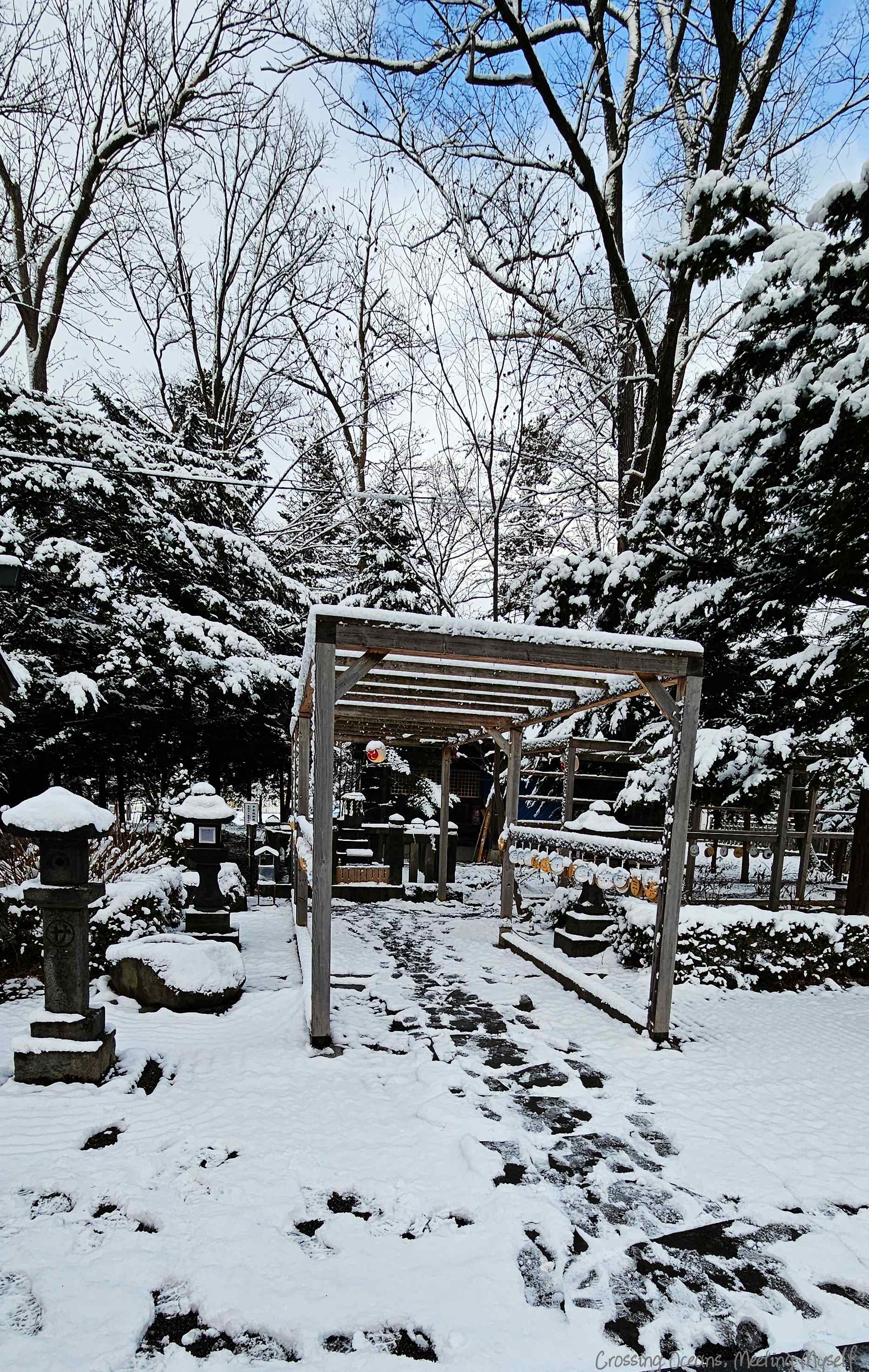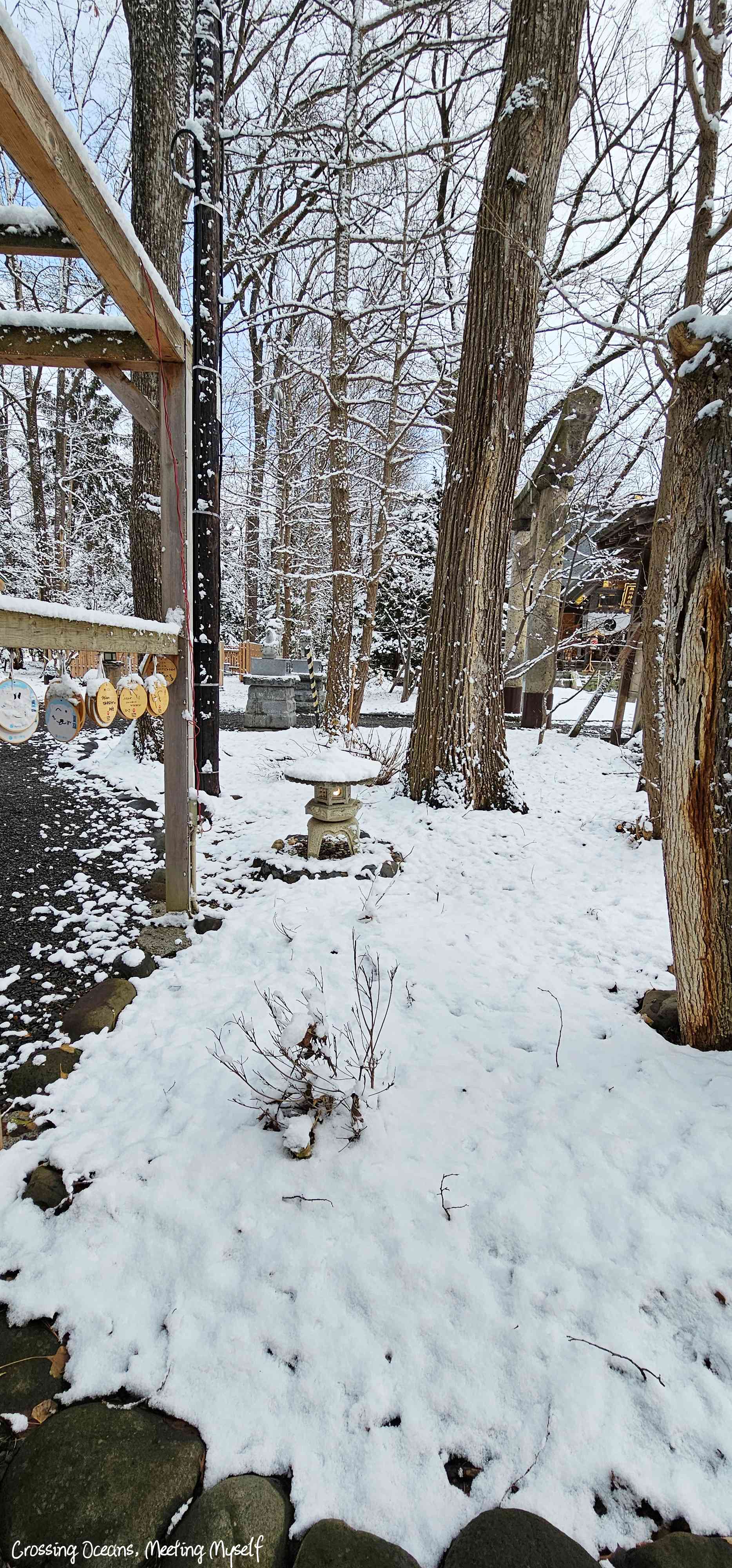 走在這裡感覺好不真實,白雪覆蓋的神社,是我未曾經歷過的風景,印象中參觀最多神社是秋天的京都,那時我也被黃、紅交織的楓葉下讚嘆秋季的美感。