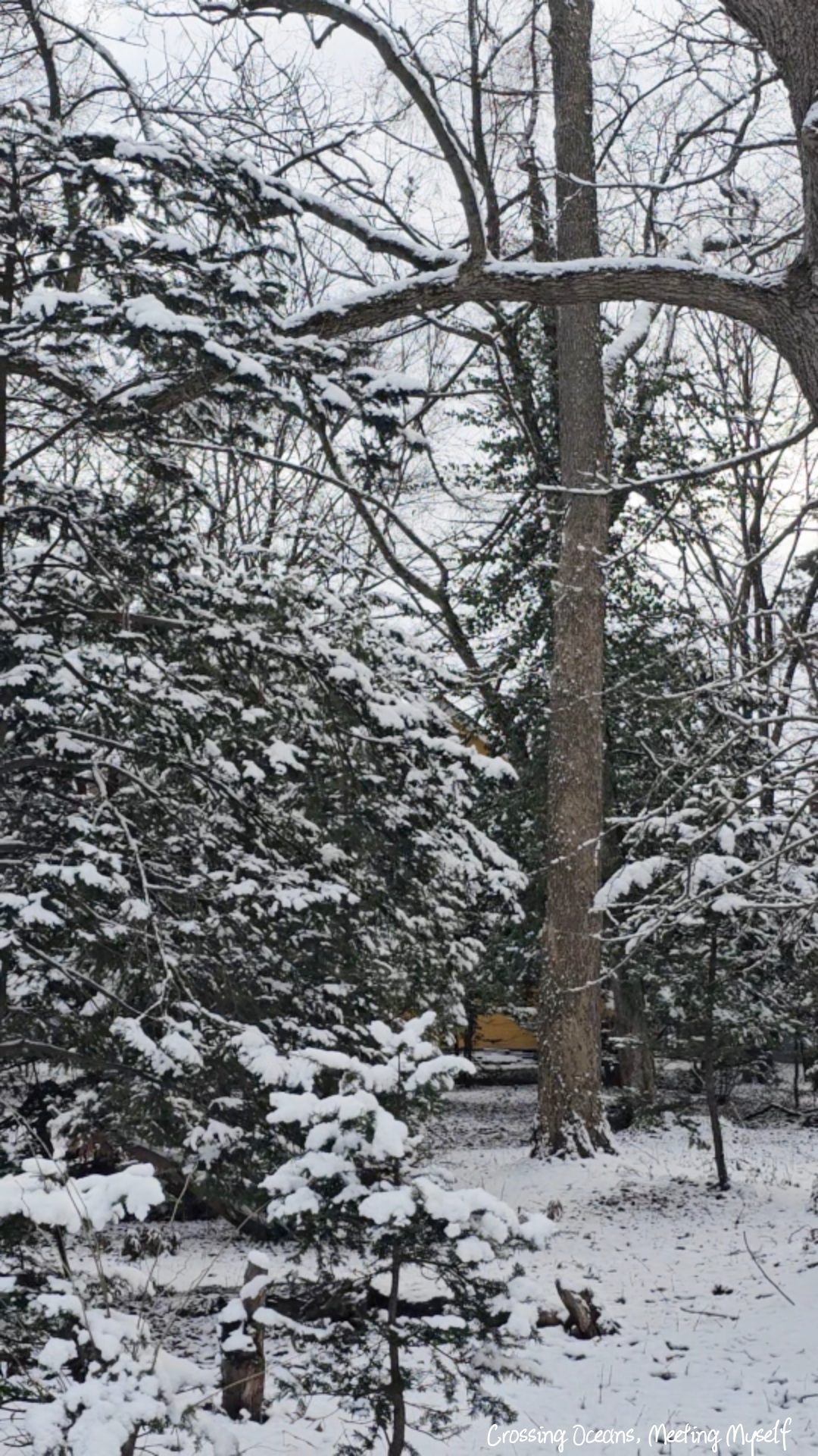 我在這看著雪慢慢落下,這只是小小的樹林,我把它想像成森林裡,我靜靜地站在看到雪隨著風往我面前飛過,心裡變得格外平靜。