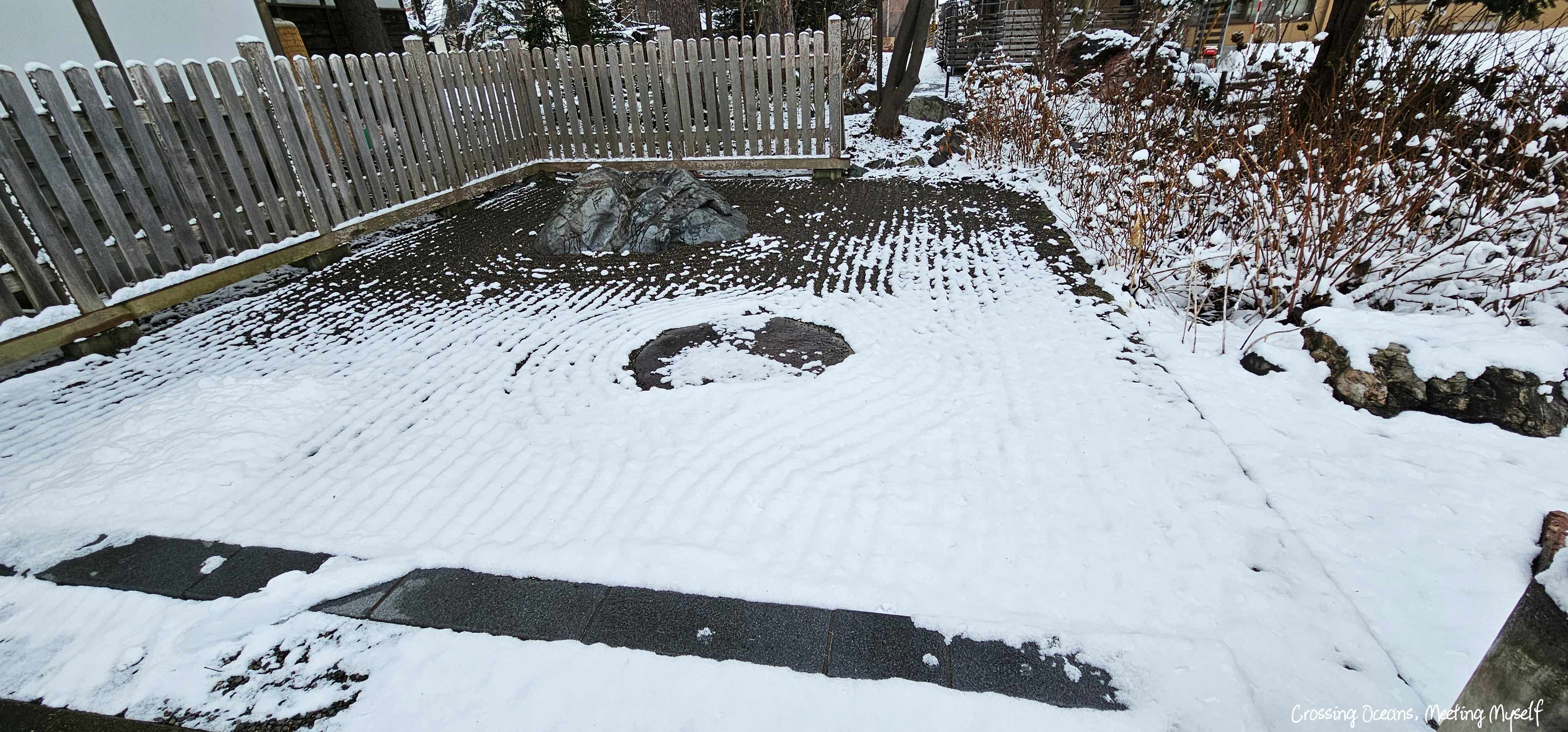 離開時,我看到用雪製成的枯山水嗎?通常是用小碎石鋪成,這是否神社工作人員以雪代替砂做成的枯山雪😊。