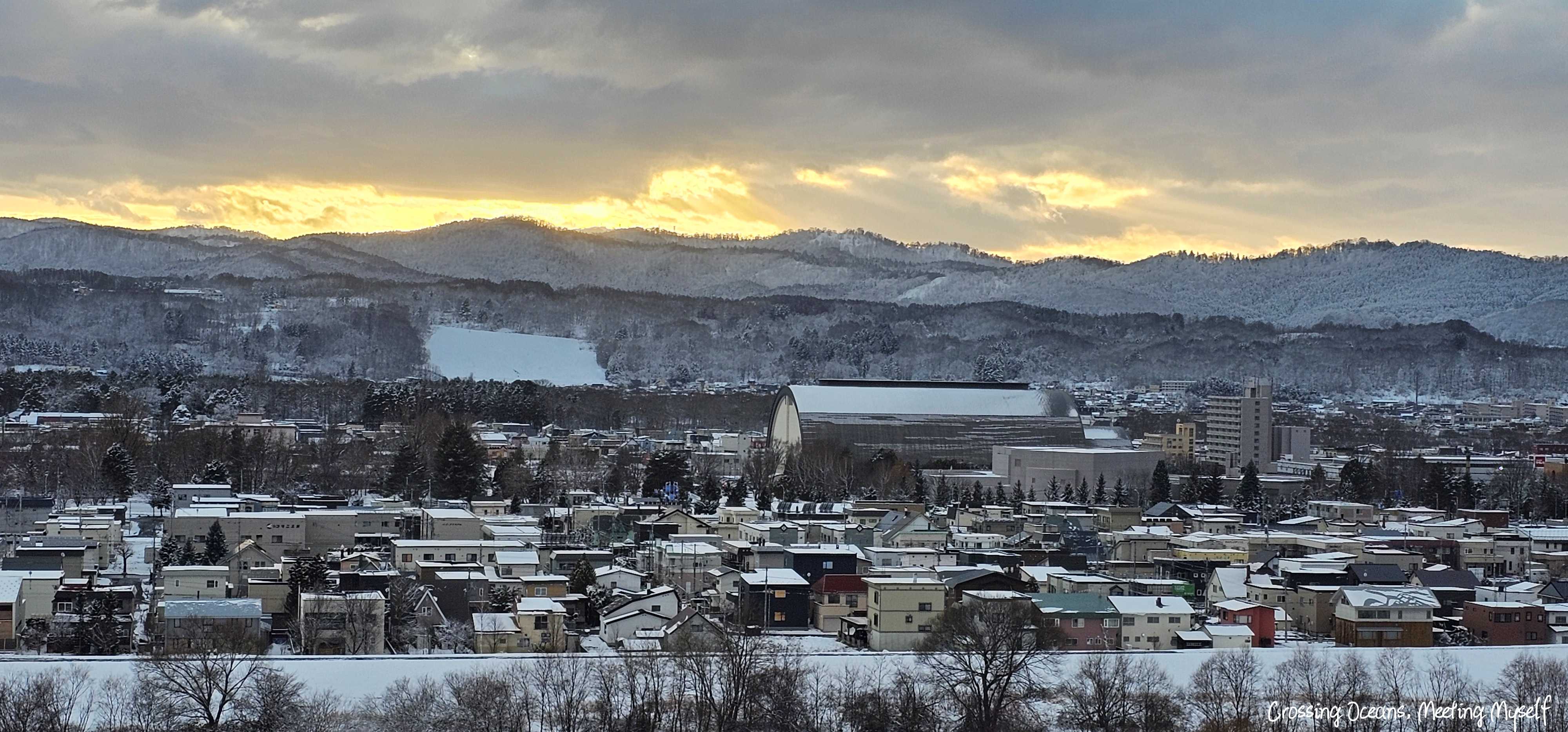 此時3點多,我看到陽光照在旭川市旁的山頭上,但溫度還是很低,特別是還在到處玩雪的我。
