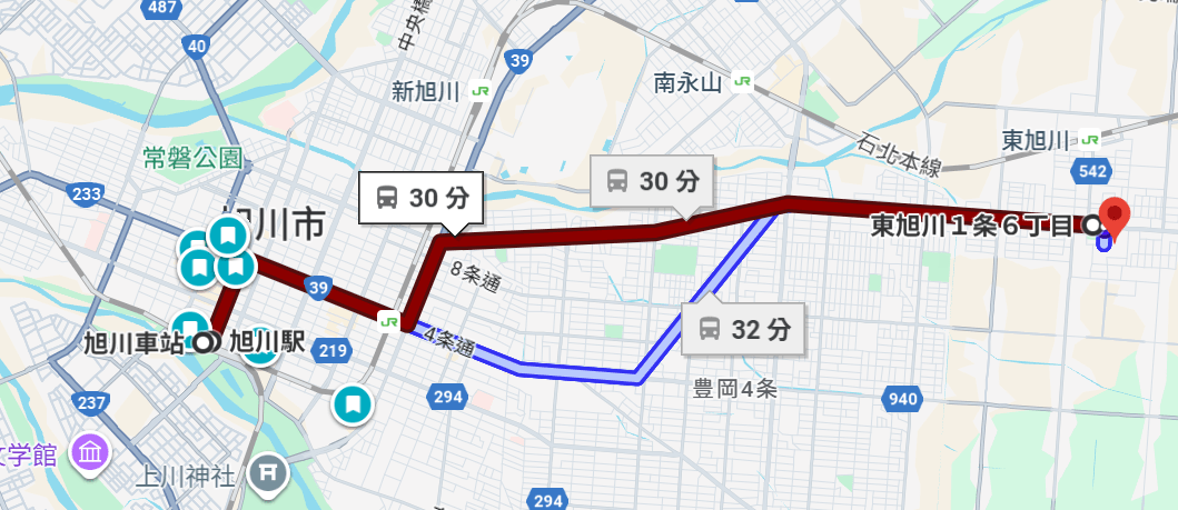 在旭川車站前去⛩️旭川神社⛩️,有41-旭山動物園線、47-旭山動物園線(公車)搭到東旭川1条6丁目站下車走3分鐘就到⛩️旭川神社⛩️,車程約30分鐘,車資¥400。